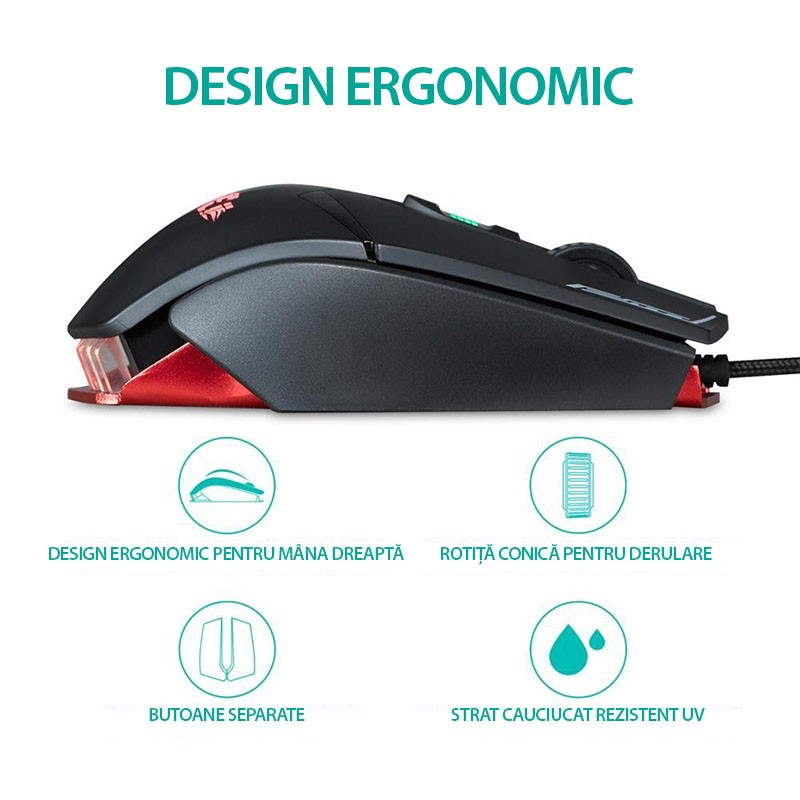 - Precizie ridicata pentru FPS/MOBA datorita senzorului optic PMW3360
