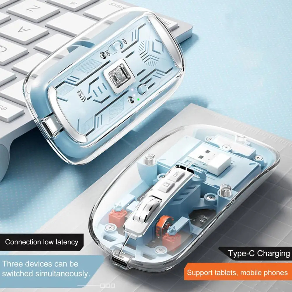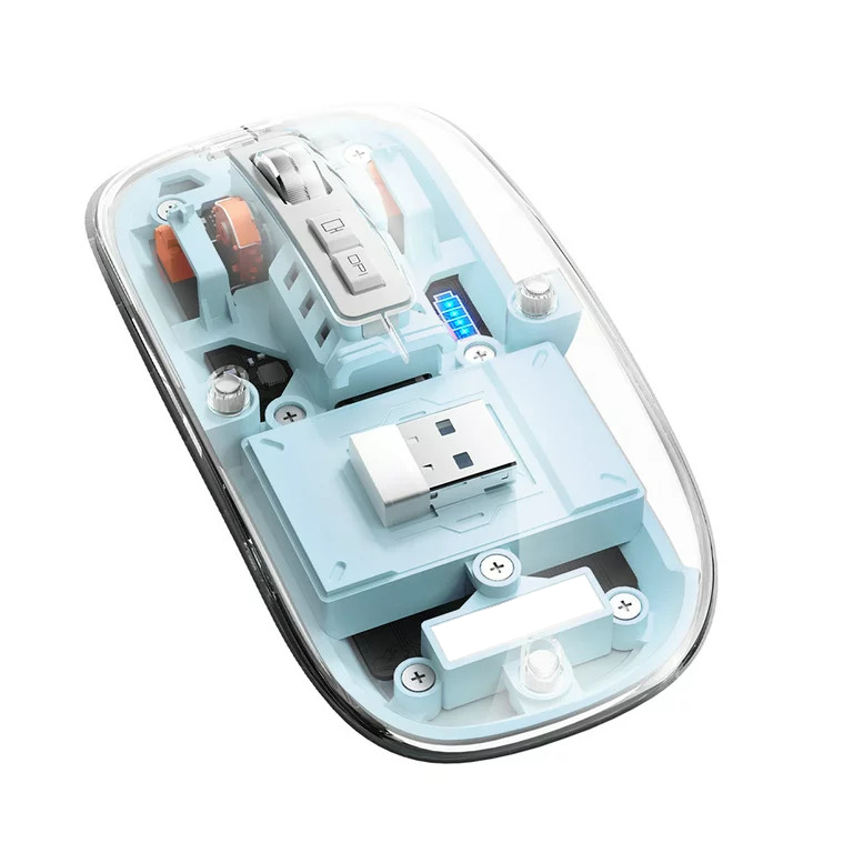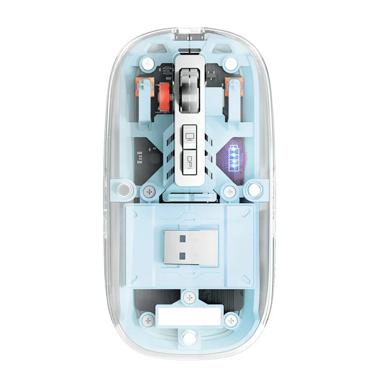 Mouse Nou M133, 2400dpi, 5 Butoane, Indicator Nivel Baterie, Transparent, Albastru, Wireless + Bluetooth NewTechnology Media