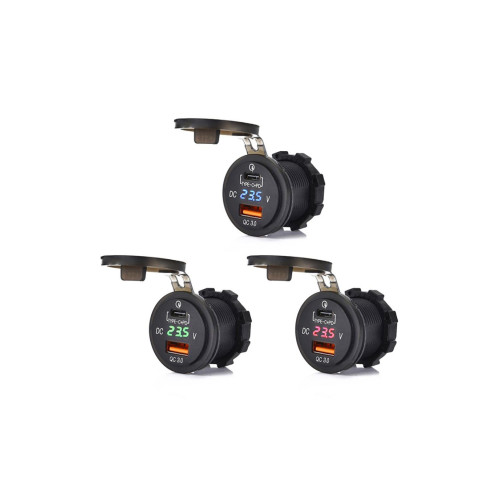 Mufa bord incarcator USB TYPE C si USB QC3.0 cu voltmetru 12V