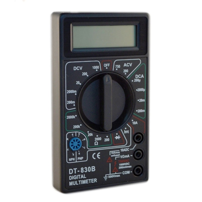 Pachetul contine: multimetru digital, 2 sonde/testere (rosu si negru), baterie 9V, instructiuni de folosire.