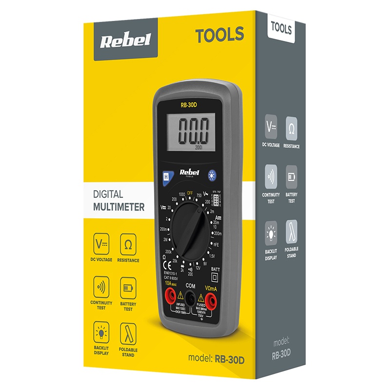 Multimetru digital universal Rebel RB-30D cu afișaj iluminat