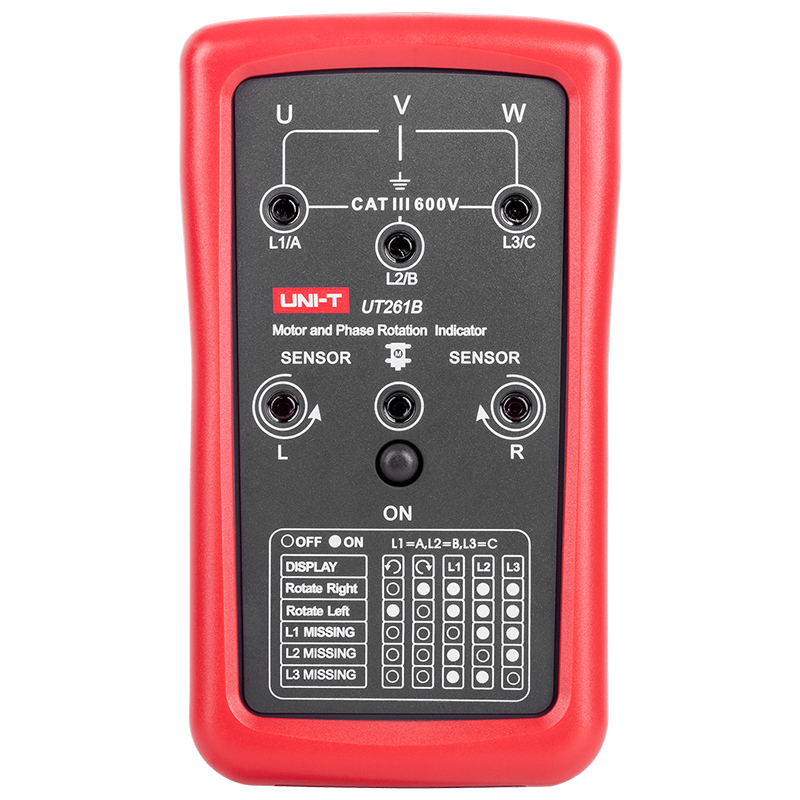 Uni-T UT261B este un tester de secvență fază (indicator de rotație) proiectat pentru verificări rapide și sigure în instalații electrice trifazate. Te ajută să identifici corect ordinea fazelor și să detectezi lipsa unei faze, cu semnalizare LED ușor de urmărit.
