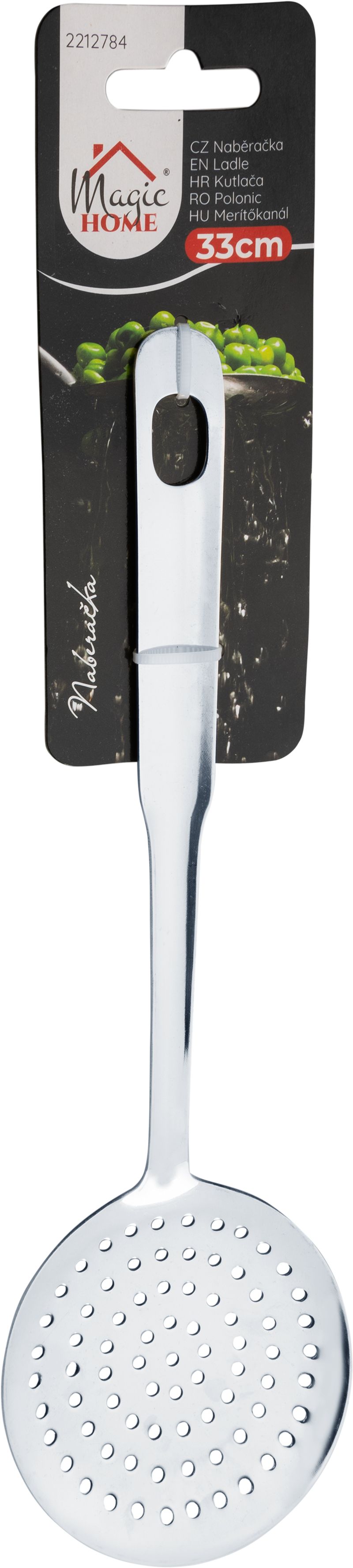 Naberačka MagicHome je vhodná na vyberanie peny z polievky či zemiakov, no zároveň skvele slúži aj na vyberanie jedál pri vyprážaní a cedenie pri varení, napríklad knedlíčkov, pirôh, zeleniny atď. Je vyrobená z kvalitnej nehrdzavejúcej ocele. Disponuje dierou na zavesenie. Rozmery: 33x7,7x3,4 cm.