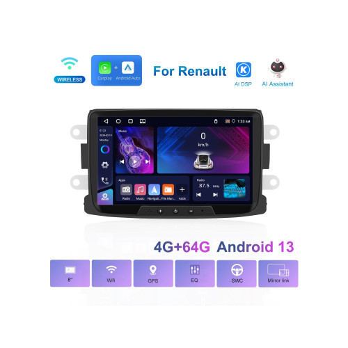 Navigație Android 8" 4GB/64GB cu CarPlay și Android Auto pentru Dacia (A3931)