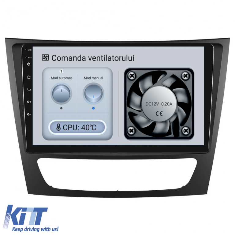 Specificatii Tehnice: Sistem Operare: Android 12 Dimensiune ecran: 9 inch cu touchscreen Memorie Ram: 4 GB Memorie interna: 64 GB Procesor:Octa-Core 1.6GHZ Chip: 8581 Conectare: USB (redare fisiere audio video) Wi-Fi (conectarea la internet se poate face prin hotspot sau SIM ) Bluetooth (redare audio sau functie apelare) Microfon incorporat Cablaj pentru conexiunea cu subwoofer si boxe suplimentare. Rezolutie: 1280 720, 1080P video HD. Display: QLED Apple CarPlay si Android Auto Wireless Ventilator pentru o racire mai eficienta Functii: Preia comenzile de pe volan si informatiile masinii. Preia senzori de parcare (afiseaza senzorii doar daca sunt din OEM fata-spate). Iesire usb (redare audio si video) Iesire audio 4x50W Cabluri RCA pentru subwoofer. Conectare telefon prin bluetooth (redare audio de pe telefon,convorbiri telefonice, agenda telefon). Suporta camera marsarier ADH si camera dvr. Continutul pachetului : 1 x Navigatie Auto 1 x Antena GPS 1 x Cabluri RCA 1 x Cablu RCA camera 1 x Cablu USB 1 x Antena 4G 1 x Suport cartela SIM 1 x Mufe de alimentare Navigatia este compatibila cu urmatoarele marci auto : Mercedes Benz: E-Class W211 (2002 - 2010)