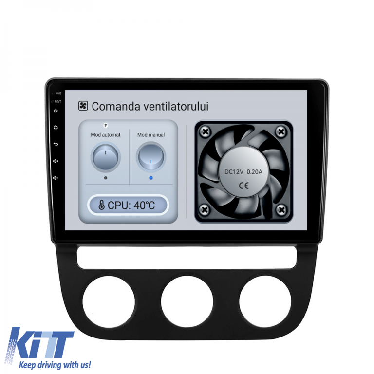 Specificatii Tehnice: Sistem Operare: Android 12 Dimensiune ecran: 9 inch cu touchscreen Memorie Ram: 4 GB Memorie interna: 64 GB Procesor:Octa-Core 1.6GHZ Chip: 8581 Conectare: USB (redare fisiere audio video) Wi-Fi (conectarea la internet se poate face prin hotspot sau SIM ) Bluetooth (redare audio sau functie apelare) Microfon incorporat Cablaj pentru conexiunea cu subwoofer si boxe suplimentare. Rezolutie: 1280 720, 1080P video HD. Display: QLED Apple CarPlay si Android Auto Wireless Ventilator pentru o racire mai eficienta Functii: Preia comenzile de pe volan si informatiile masinii. Preia senzori de parcare (afiseaza senzorii doar daca sunt din OEM fata-spate). Iesire usb (redare audio si video) Iesire audio 4x50W Cabluri RCA pentru subwoofer. Conectare telefon prin bluetooth (redare audio de pe telefon,convorbiri telefonice, agenda telefon). Suporta camera marsarier ADH si camera dvr. Continutul pachetului : 1 x Navigatie Auto 1 x Antena GPS 1 x Cabluri RCA 1 x Cablu RCA camera 1 x Cablu USB 1 x Antena 4G 1 x Suport cartela SIM 1 x Mufe de alimentare 1 x Canbus Navigatia este compatibila cu urmatoarele marci auto : Volkswagen: Golf 5 (2004 - 2009) Jetta (2004 - 2009)
