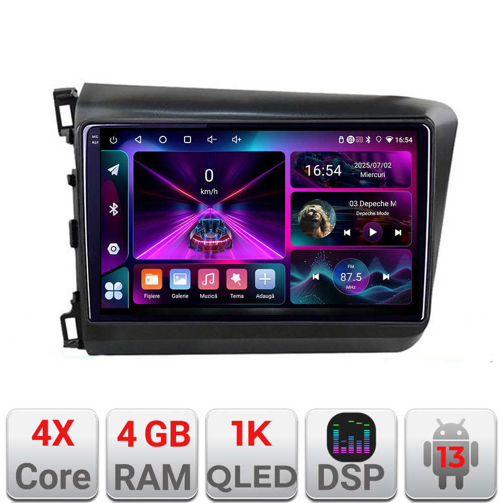 Modelul este compatibil cu Honda Civic Sedan 2012-2015 si include conector dedicat pentru integrarea comenzilor de pe volan, astfel incat sa pastrezi confortul in utilizarea zilnica. Interfata Android permite acces rapid la harti, muzica, apeluri si aplicatii preferate, oferind o experienta multimedia mai bogata in comparatie cu sistemul standard.