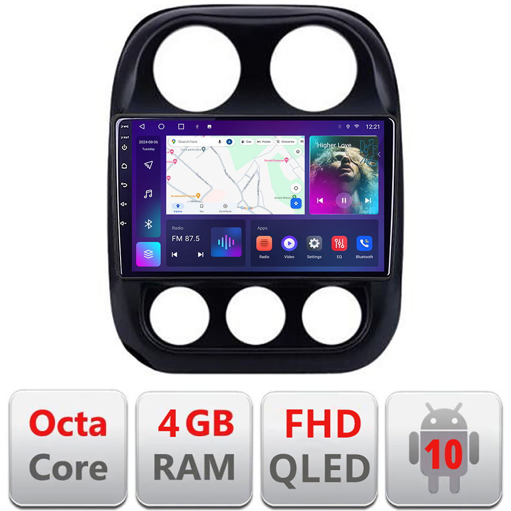 Navigatie Android Jeep Compass 2010-2016 cu ecran QLED, 4GB RAM si 64GB