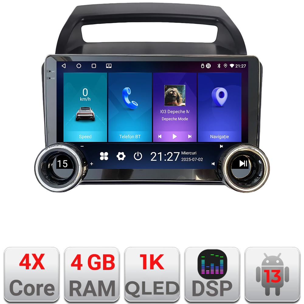 Modelul include conector dedicat pentru preluarea comenzilor de pe volan, ceea ce ajuta la pastrarea functiilor importante ale masinii. Conectivitatea WiFi 5GHz si functiile Android permit utilizarea aplicatiilor de navigatie online, redarea continutului media si accesul rapid la informatii in timpul calatoriilor.