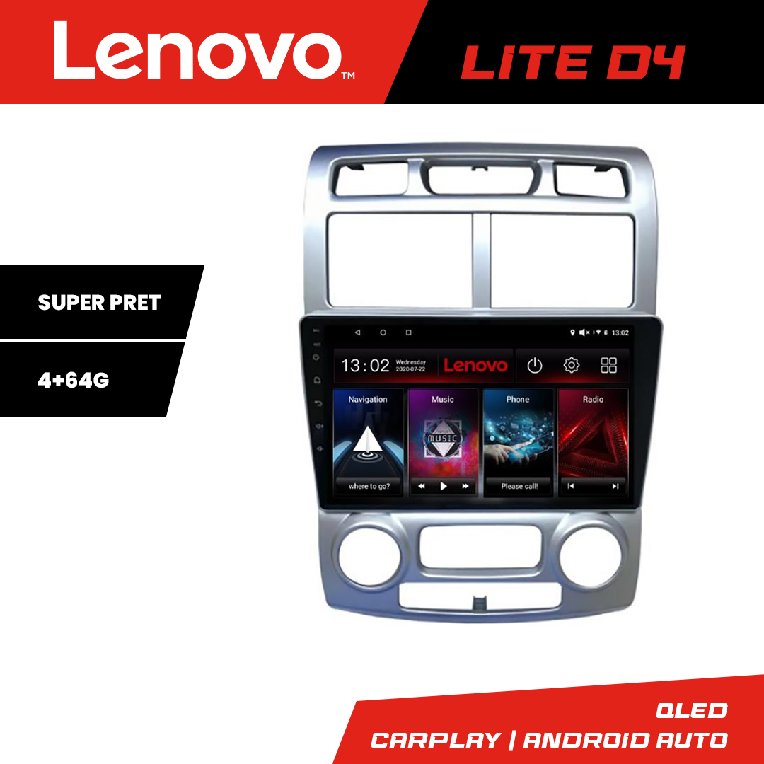 Upgradează interiorul mașinii tale cu această navigație Android pentru Kia Sportage 2005-2007, concepută pentru integrare elegantă și utilizare ușoară. Modelul Lenovo Lite D4 oferă performanță bună datorită configurației 4 GB RAM + 64 GB stocare, fiind ideal pentru aplicații precum Waze, YouTube, radio, muzică și navigare online. Este o soluție practică pentru șoferii care vor mai mult confort, conectivitate și control în timpul deplasărilor.