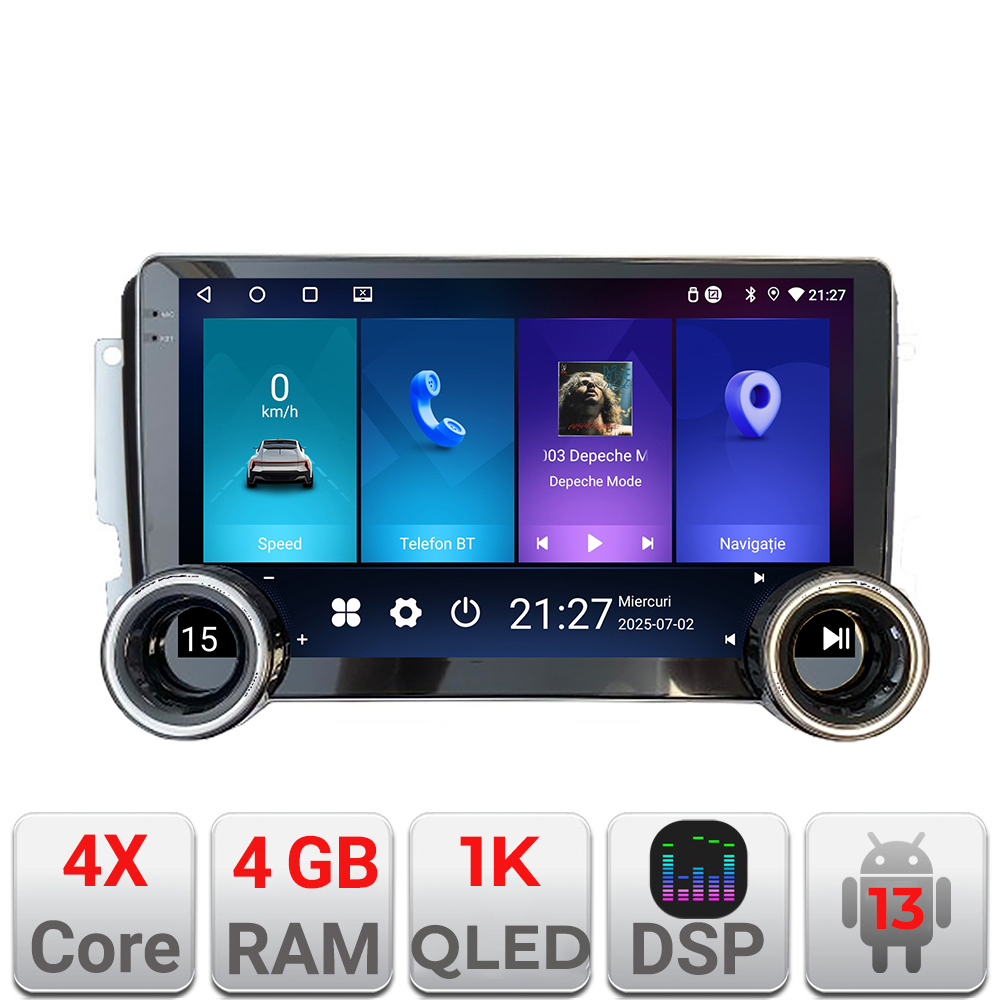 Este alegerea potrivită dacă îți dorești un sistem multimedia complet, cu GPS, WiFi 5GHz, conectivitate online și integrare facilă în bord. În plus, unitatea include conector dedicat pentru comenzile de pe volan, pentru un plus de confort în utilizarea zilnică.