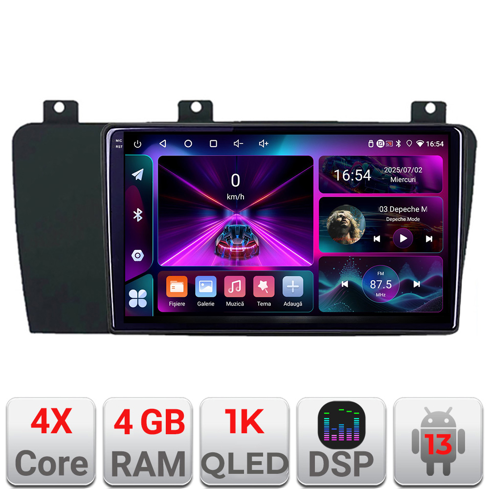 Datorită configurației cu 4GB RAM, stocare 64GB și procesor 4-Core, meniurile se mișcă fluent, iar aplicațiile uzuale rulează eficient. Ecranul InCell 1K oferă o imagine clară și plăcută, potrivită pentru navigație, video și controlul funcțiilor zilnice.