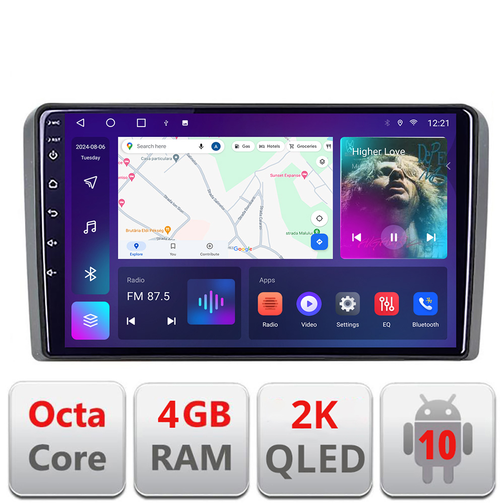 Navigatie Audi A3 8P C-049 Android Octa Core Ecran 2K QLED GPS 4G 4+32GB 360 KIT-049+EDT-E409-2K CarStore Technology