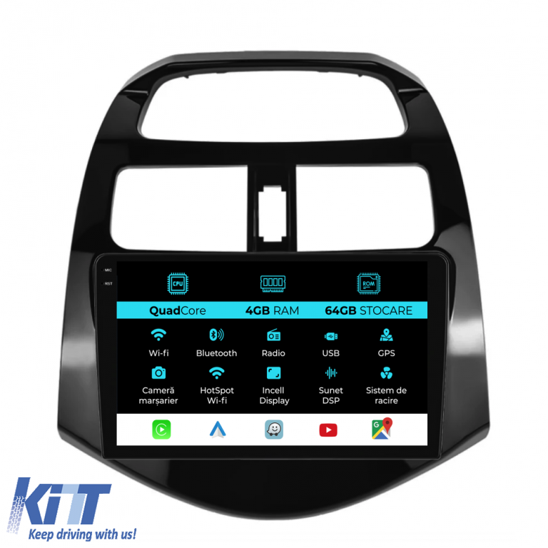 Navigatie Dedicata Chevrolet Spark (2009-2015), QuadCore, 9Inch, 4Gb Ram, 64Gb Stocare, Carplay Performance AutoTuning