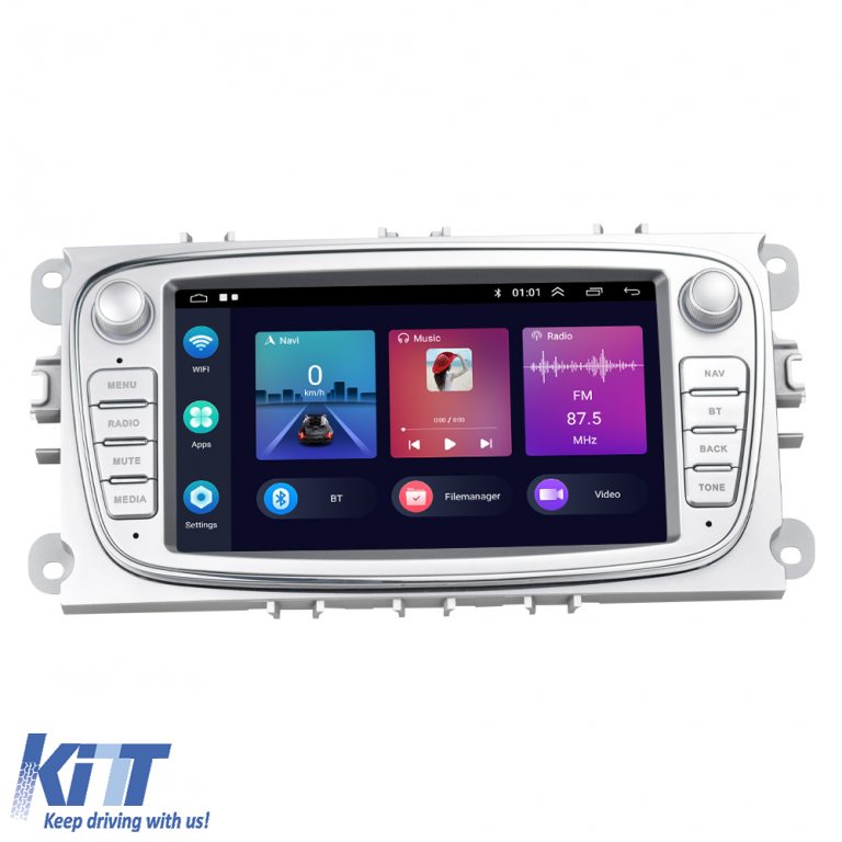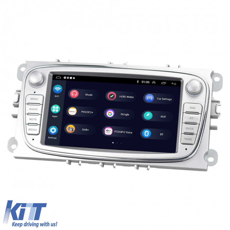 Navigatie Dedicata Ford Focus, Mondeo,C-Max, Kuga, 7inch, 2Gb Ram, 64Gb stocare, Carplay, Argintiu