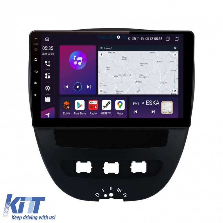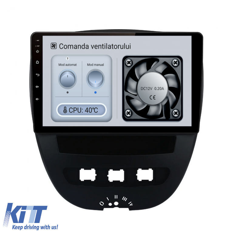 Specificatii Tehnice: Sistem Operare: Android 12 Dimensiune ecran: 9 inch cu touchscreen Memorie Ram: 4 GB Memorie interna: 64 GB Procesor:Octa-Core 1.6GHZ Chip: 8581 Conectare: USB (redare fisiere audio video) Wi-Fi (conectarea la internet se poate face prin hotspot sau SIM ) Bluetooth (redare audio sau functie apelare) Microfon incorporat Cablaj pentru conexiunea cu subwoofer si boxe suplimentare. Rezolutie: 1280 720, 1080P video HD. Display: QLED Apple CarPlay si Android Auto Wireless Ventilator pentru o racire mai eficienta Functii: Preia comenzile de pe volan si informatiile masinii. Preia senzori de parcare (afiseaza senzorii doar daca sunt din OEM fata-spate). Iesire usb (redare audio si video) Iesire audio 4x50W Cabluri RCA pentru subwoofer. Conectare telefon prin bluetooth (redare audio de pe telefon,convorbiri telefonice, agenda telefon). Suporta camera marsarier ADH si camera dvr. Continutul pachetului : 1 x Navigatie Auto 1 x Antena GPS 1 x Cabluri RCA + Slot Sim 1 x Cablu RCA camera 1 x Cablu USB 1 x Canbus 1 x Mufe de alimentare Navigatia este compatibila cu urmatoarele marci auto : Peugeot: 107 (2005 - 2015) Citroen: C1 (2005 - 2015) Toyota: Aygo (2005 - 2014)