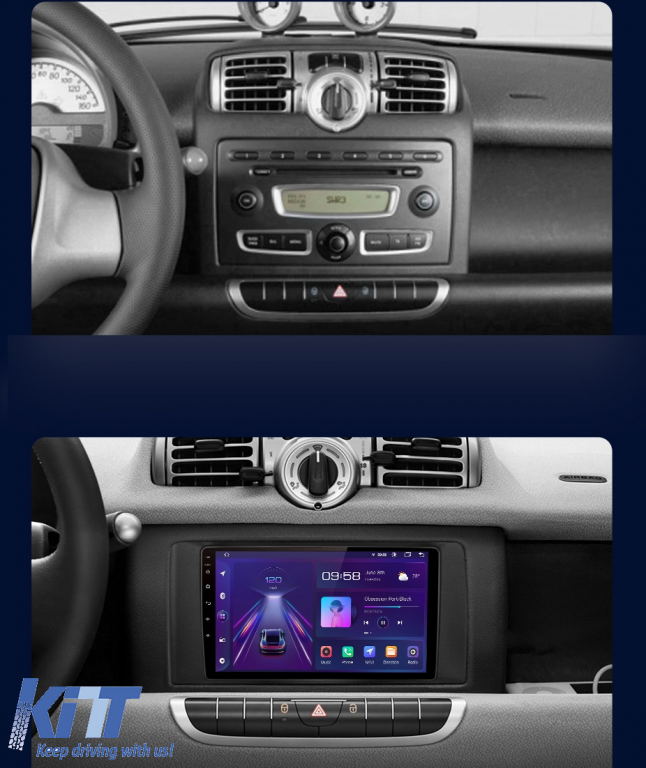 Navigatie Dedicata Smart For Two (2005-2010) For Four (2005-2010), 9 Inch, 6Gb Ram, 128Gb stocare, Bluetooth, WiFi, Waze Performance AutoTuning