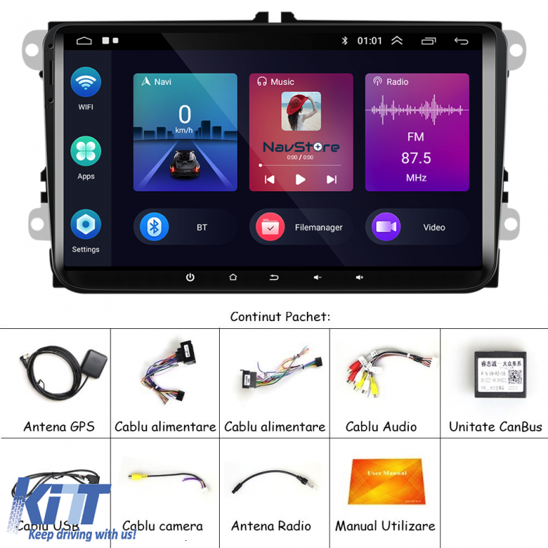 Sistem de operare: Android 13 Procesor: Quadcore Memorie RAM: 2GB Stocare interna (ROM): 64GB Dimensiune Display: 9 Inch Rezolutie ecran: 1280x720p Bluetooth: Bluetooth pentru apeluri, descarcare agenda telefonica si redare muzica WiFi: Da (Integrat) Slot Sim 4G: Nu Conectivitate retea: Hotspot telefon, router extern, dongle 3G sau 4G, CarPlay Android Auto Microfon: Microfon integrat, cu posibilitate de conectare microfon extern Alimentare: 12V Putere audio: 4x45W Egalizator DSP: Procesor de sunet digital (DSP EQ) Compatibilitate USB SD: Compatibil cu USB de pana la 128GB, suport SD prin adaptor USB Compatibilitate aplicatii Android: Compatibil cu majoritatea aplicatiilor Android din Google Play Compatibilitate CarPlay si Android Auto: Da, compatibil cu iOS (CarPlay) si Android (Android Auto) Suport pentru limba Romana, Engleza, Maghiara, Spaniola, Italiana, Germana, etc. Tip ecran: TouchScreen capacitiv, multi-touch, IPS Setari luminozitate: Da Radio RDS: Da Iesire subwoofer RCA: Da Iesire video RCA: Da, cu ajutorul unui adaptor USB Iesire audio RCA: Da GPS: Da, (Google Maps, Waze, HereWeGo) Senzori de parcare: Da (Preluare senzori de parcare cu afisaj unde este cazul) Control volan: Da (Preluare comenzi volan cu canbus sau analogic unde este cazul) Compatibilitate camera DVR: Da Compatibilitate camera marsarier: Da (pentru preluarea camerei OEM este necesar un adaptor special) Manual de utilizare: Da Continut pachet: Navigatie Android Cablaj de alimentare Antena GPS Conectori RCA Cablaj pentru camera de marsarier, 2 cabluri USB Canbus Certificat de garantie Factura fiscala Navigatia este compatibila cu urmatoarele marci auto : VOLKSWAGEN: Amarok (2010-2015) Beetle (2011-2015) Jetta (2005-2015) Caddy (2004-2015) EOS (2006-2015) Golf 5 (2003-2009) Golf 6 (2008-2013) Golf Plus (2004-2013) Jetta V (2005-2009) Jetta Vl (2010-2015) Passat B6 (2005-2010) Passat B7 (2010-2014) Passat CC (2008-2011) Polo (2009-2014) Scirocco (2008-2011) Sharan (2010-2014) Touran (2003-2014) Tiguan (2007-2013) T5 Multivan (2010-2013) T5 Transporter (2010-2013) T5 Caravelle (2010-2015) SEAT: Alhambra (2010-2015) Altea (2004-2015) Altea XL (2007-2015) Leon (2005-2012) Toledo (2004-2015) SKODA: Fabia (2007 - 2012) Praktic (2007 - 2012) Roomster (2006 - 2012) Octavia 2 (2004 - 2012) Yeti (2009 - 2012) Superb (2008 - 2012)