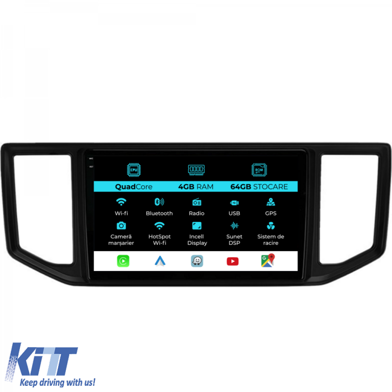Sistem de operare: Android 13 Procesor: Quad-core 1.5Ghz Memorie RAM: 4GB Stocare interna (ROM): 64GB Dimensiune Display: 10 Inch Rezolutie ecran: 1280x800p Bluetooth: Bluetooth pentru apeluri, descarcare agenda telefonica si redare muzica WiFi: Da (Integrat) Slot Sim 4G: Nu Conectivitate retea: Hotspot telefon, router extern, dongle 3G sau 4G, CarPlay Android Auto Microfon: Microfon integrat, cu posibilitate de conectare microfon extern Alimentare: 12V Putere audio: 4x45W Egalizator DSP: Procesor de sunet digital (DSP EQ) Compatibilitate USB SD: Compatibil cu USB de pana la 128GB, suport SD prin adaptor USB Compatibilitate aplicatii Android: Compatibil cu majoritatea aplicatiilor Android din Google Play Compatibilitate CarPlay si Android Auto: Da, compatibil cu iOS (CarPlay) si Android (Android Auto) Suport pentru limbi:a Romana, Engleza, Maghiara, Spaniola, Italiana, Germana, etc. Tip ecran: TouchScreen capacitiv, multi-touch, IPS Setari luminozitate: Da Radio RDS: Da Iesire subwoofer RCA: Da Iesire video RCA: Da, cu ajutorul unui adaptor USB Iesire audio RCA: Da GPS: Da, (Google Maps, Waze, HereWeGo) Senzori de parcare: Da (Preluare senzori de parcare cu afisaj unde este cazul) Control volan: Da (Preluare comenzi volan cu canbus sau analogic unde este cazul) Compatibilitate camera DVR: Da Compatibilitate camera marsarier: Da Manual de utilizare: Da Continut pachet: Navigatie Android Rama adaptoare Cablaj de alimentare Antena GPS Conectori RCA Cablaj pentru camera de marsarier, 2 cabluri USB Canbus (doar daca este cazul) Certificat de garantie Factura fiscala Navigatia este compatibila cu urmatoarele marci auto : Volkswagen: Crafter (2017-2021)