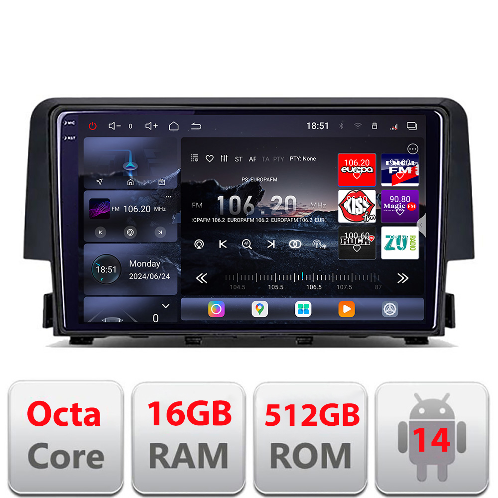Navigație Honda Civic 2016-2020 Android 14 QLED 2K, 16GB RAM, 512GB