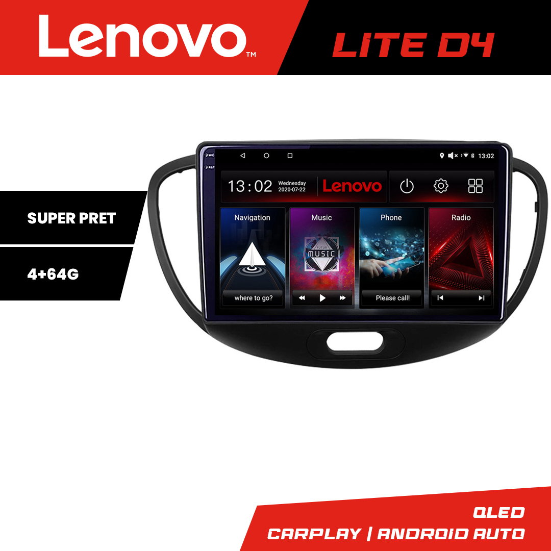Navigație Hyundai i10 2007-2013 Android 4GB+64GB GPS CarPlay Lenovo