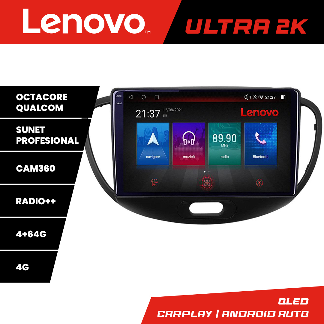 Navigație Hyundai i10 2007-2013 Android QLED 4+64GB 4G GPS Lenovo