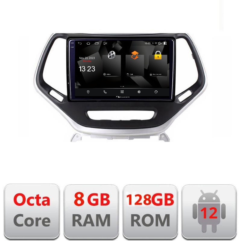 Navigație Jeep Cherokee 2014-2019 Android 12, 2K QLED, 8GB RAM, 128GB