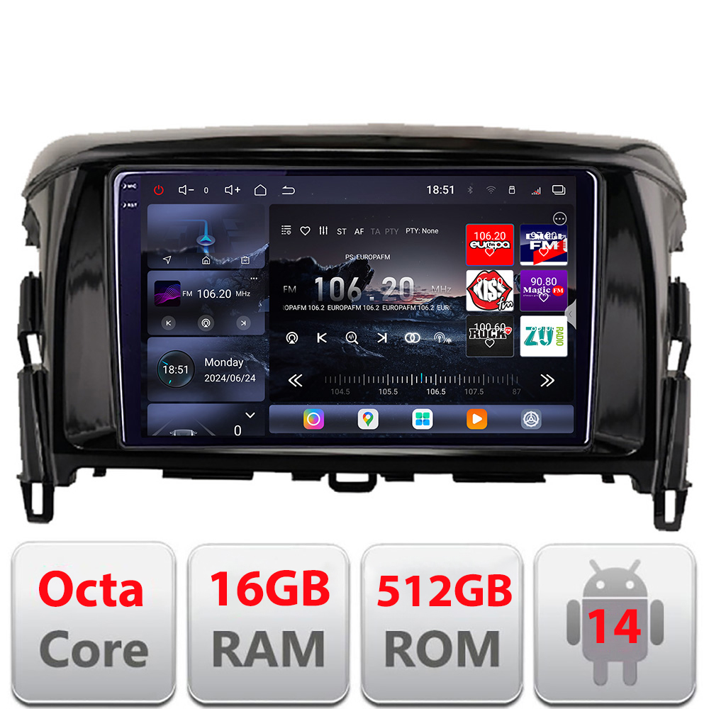Navigatie Mitsubishi Eclipse Cross 2017- Android radio gps internet 8 core QLED 2K 16+512GB 360 Edotec