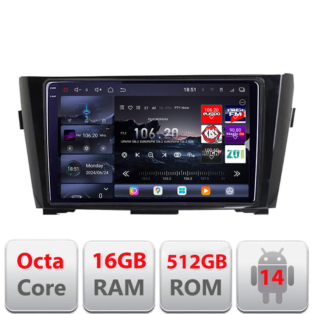 Navigatie Nissan Qashqai X-Trail 2013-2018 Edotec Kit-353 8 core QLED 2K 16+512GB 360 Android Waze USB Navigatie Internet Youtube Radio