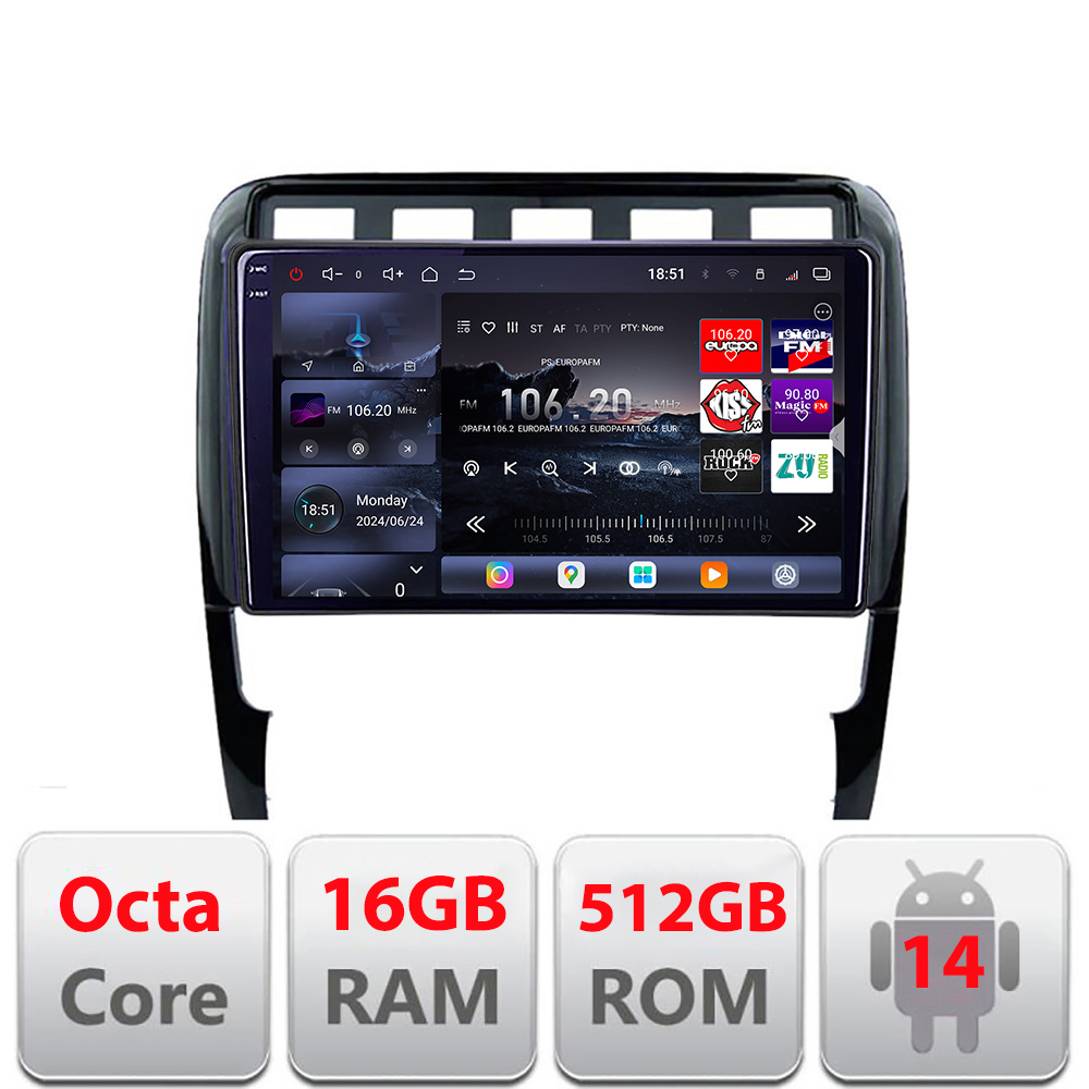 Navigatie Porsche Cayenne 2002-2011 Edotec Kit-443 8 core QLED 2K 16+512GB 360 Android Waze USB Navigatie Internet Youtube Radio