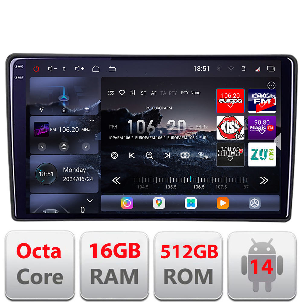 Navigatie Toyota Android radio gps internet 8 core QLED 2K 16+512GB 360 Edotec
