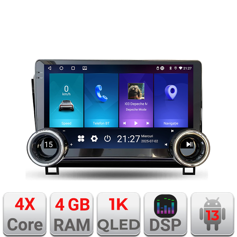 Este o alegere potrivită dacă îți dorești acces rapid la aplicații de navigație, muzică, apeluri Bluetooth și internet direct din bord. Ecranul generos și clar facilitează utilizarea aplicațiilor, iar configurația 4GB RAM + 64GB susține o funcționare fluentă în sarcinile obișnuite.