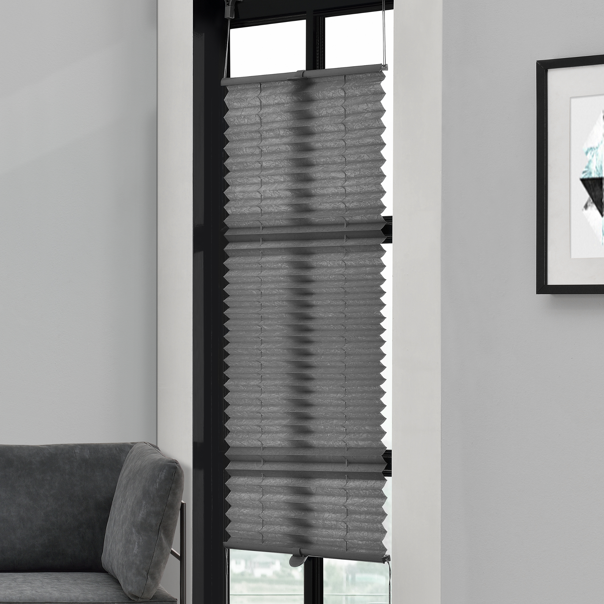 Solutie cu stil, practica,estetica si economica in apartamentul dumneavoastra, face ca lumina care patrunde sa fie placuta si deasemenea va protejeaza vizual de la exterior. Decoreaza, amortizeaza patrunderea luminii de afara si apara impotriva razelor arzatoare ale soarelui. Protejeaza bunurile, mobila si decoratiunile interioare de la decolorare.Materialul roletei este din textil plisat, se muleaza pe geam ca o armonica si se pozitioneaza intre tocul geamului. Datorita designului manerului poate fi trasa in sus sau in jos cu usurinta.