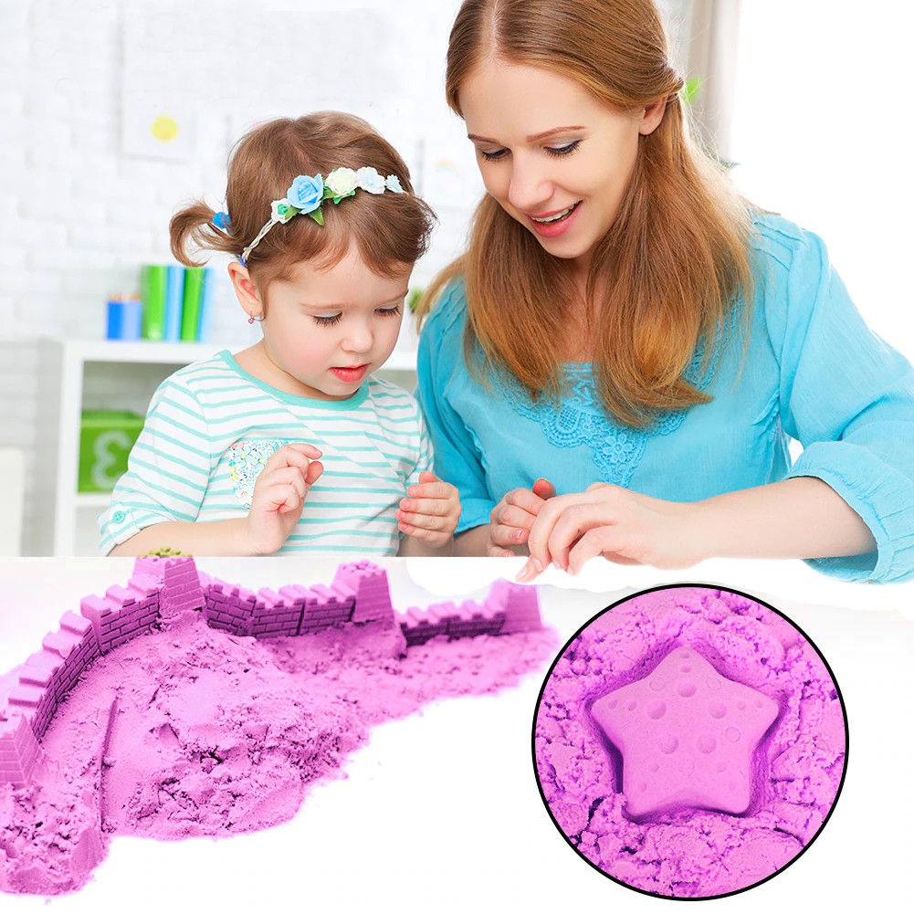 Este o jucarie netoxica, extrem de indragita chiar si de adulti, nisipul poate fi modelat, decupat, realizand diverse forme, taiat cu foarfeca, etc.
