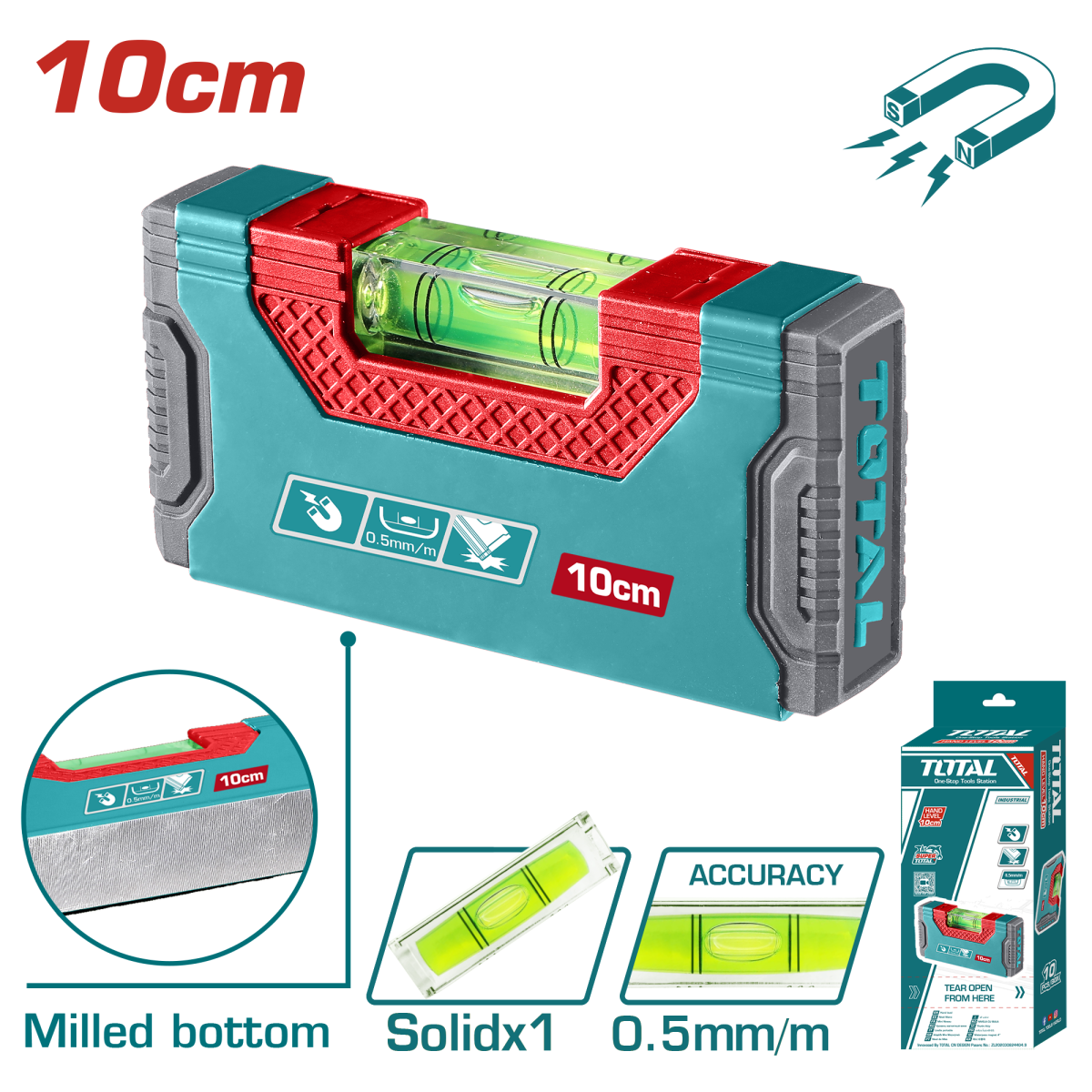 Nivela magnetica cu bula TOTAL 10 cm este alegerea practica pentru lucrari de aliniere si verificari rapide in spatii inguste. Datorita formatului compact, se foloseste usor in ateliere, santier, montaj metalic sau lucrari de bricolaj, acolo unde o nivela magnetica clasica ar fi prea mare.