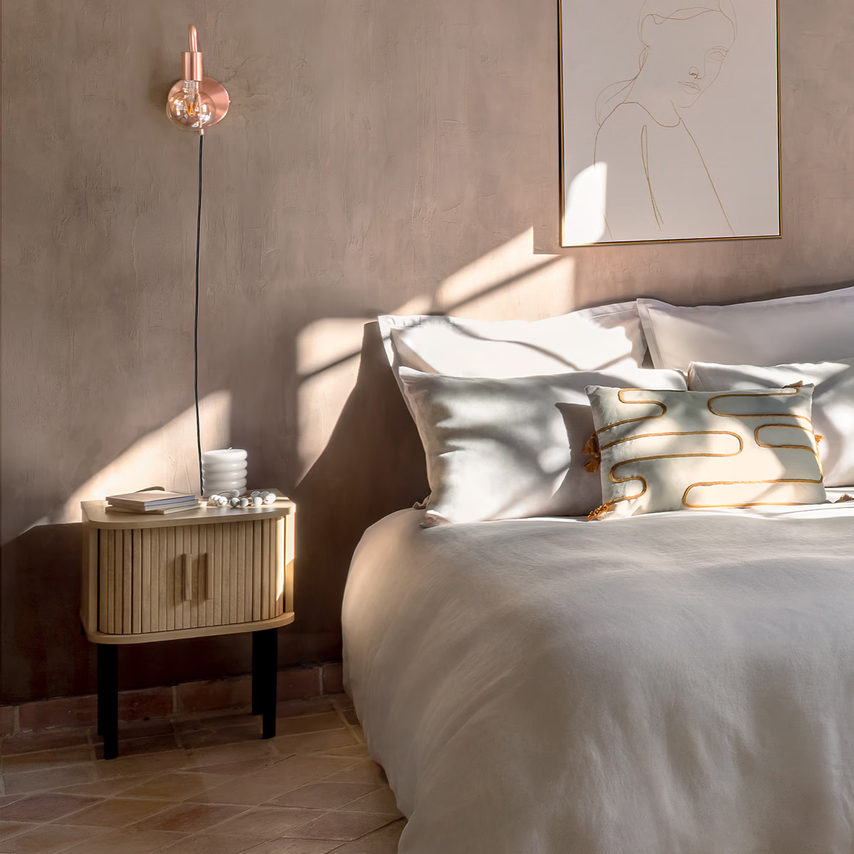 Alege o noptiera bej care imbina aspectul cald al lemnului cu un design practic, usor de integrat in dormitoare moderne, scandinave sau vintage. Modelul Atmosphera Colva ofera spatiu de depozitare discret, fiind ideal pentru carti, accesorii, incarcatoare sau alte obiecte pe care vrei sa le ai la indemana langa pat. Finisajul cu efect de stejar si liniile rotunjite adauga un plus de stil, iar picioarele metalice contribuie la stabilitate si la un aspect aerisit.