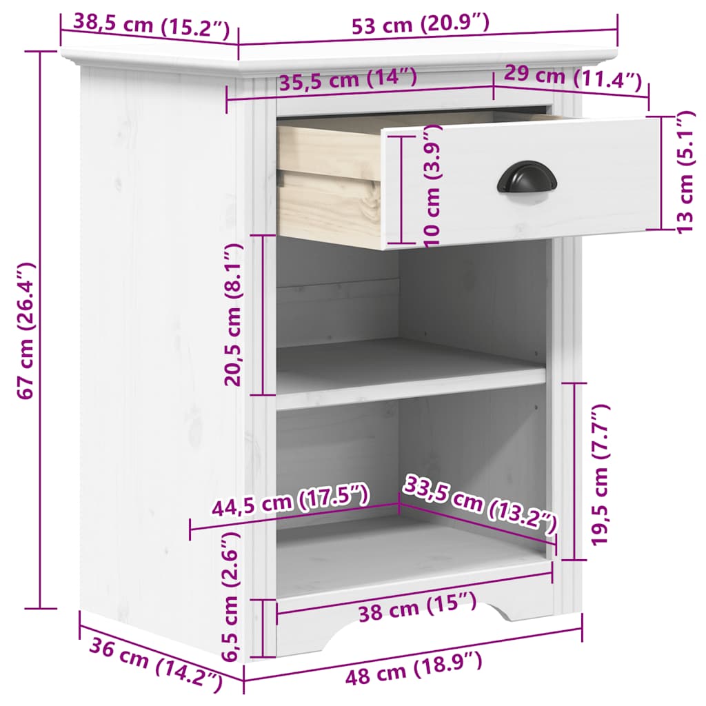 Noptieră "BODO", alb, 53x38,5x67 cm, lemn masiv de pin GartenMobel Dekor