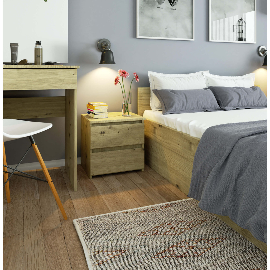 Noptieră cu 2 sertare din PAL laminat, 40x35x40 cm, stejar artisan