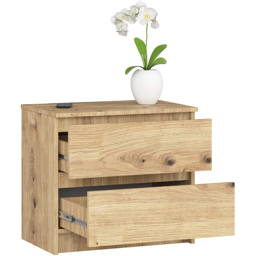 Noptiera cu 2 sertare din PAL laminat, 60x40x55 cm, stejar artisan