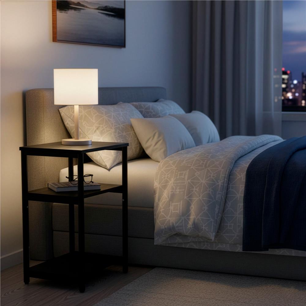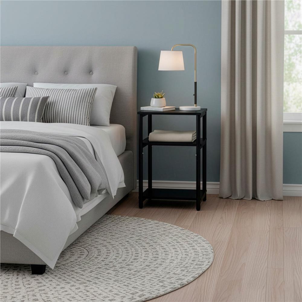 Alege o noptiera cu 3 rafturi practica si moderna, potrivita pentru dormitor, living sau colturi mici care au nevoie de organizare eficienta. Realizata din PAL si cadru metalic, aceasta noptiera neagra imbina aspectul minimalist cu rezistenta de zi cu zi. O poti folosi langa pat pentru lampa, carte, telefon sau alte obiecte personale, dar si ca masuta laterala in diverse incaperi.