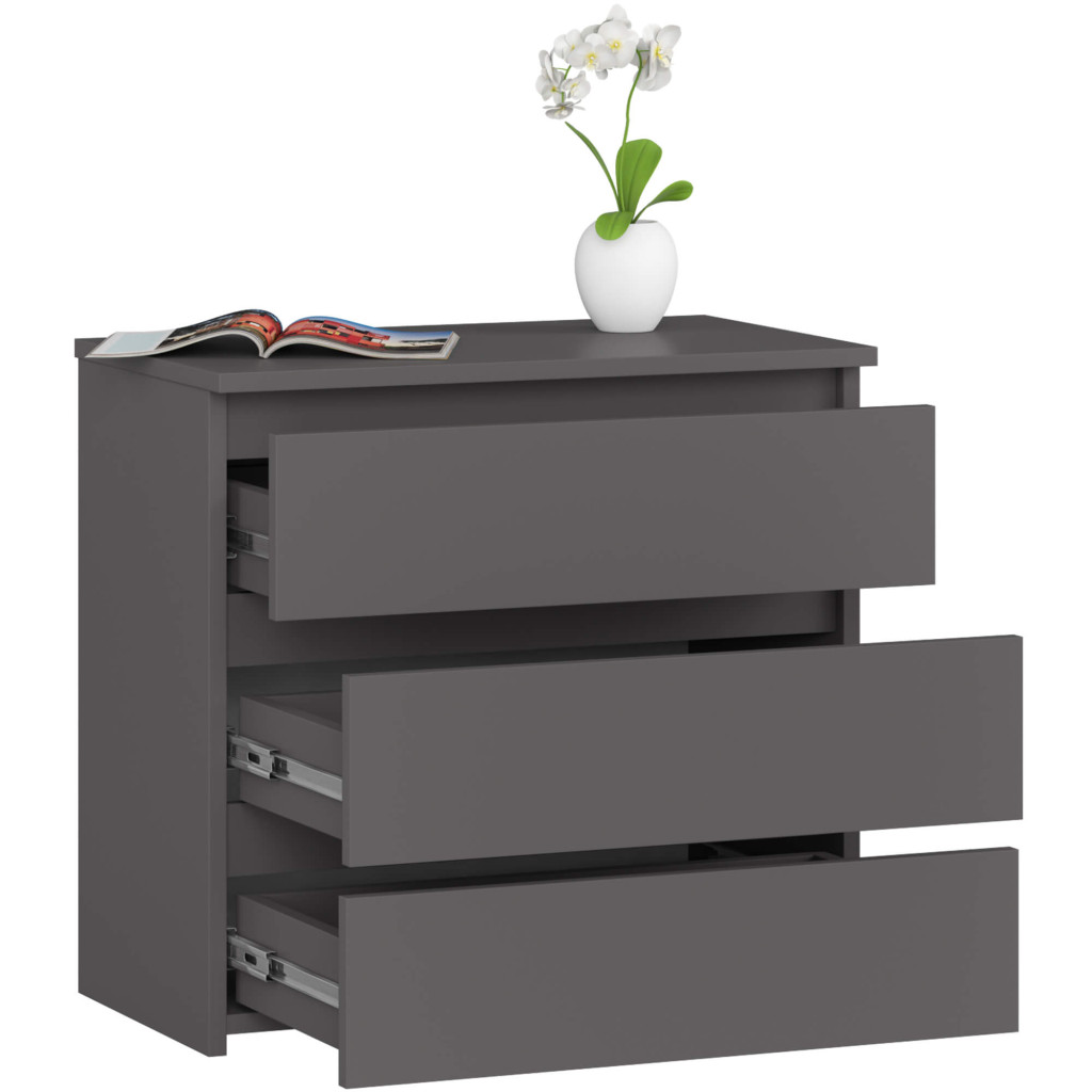 Noptiera cu 3 sertare, PAL laminat 16 mm, 60x35x57 cm, gri mat Household NewTrend