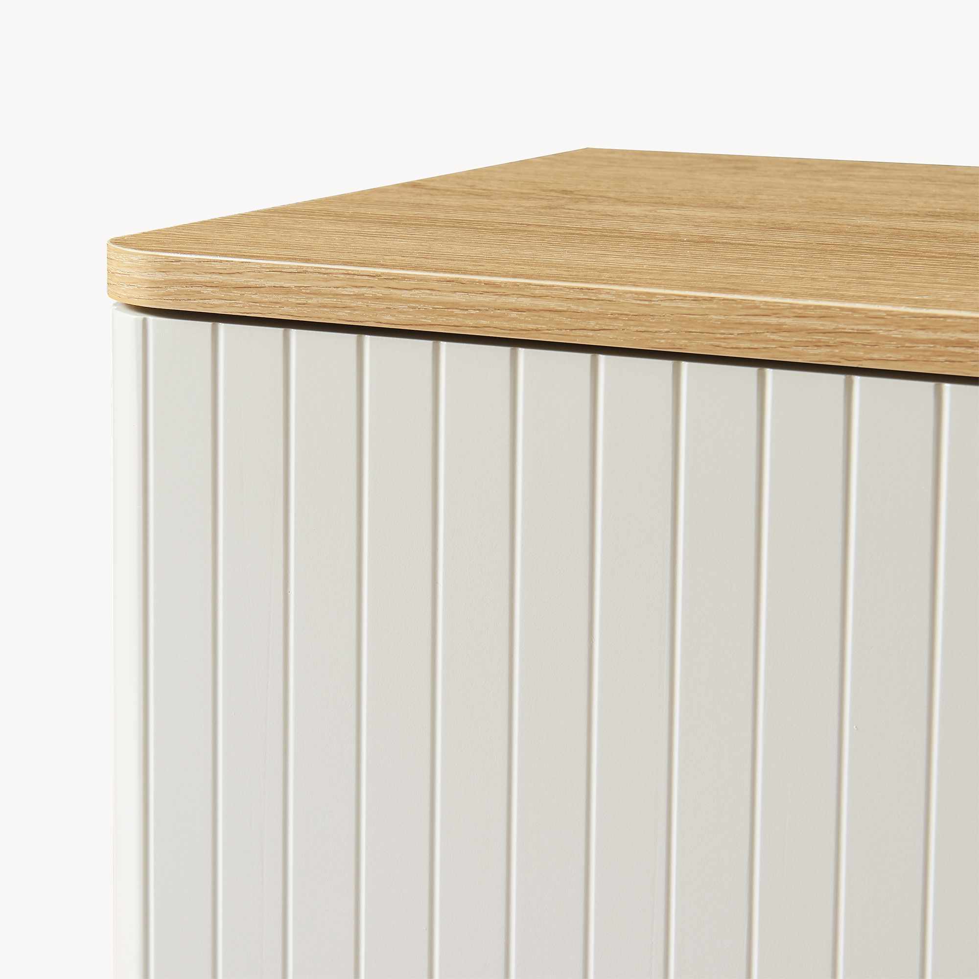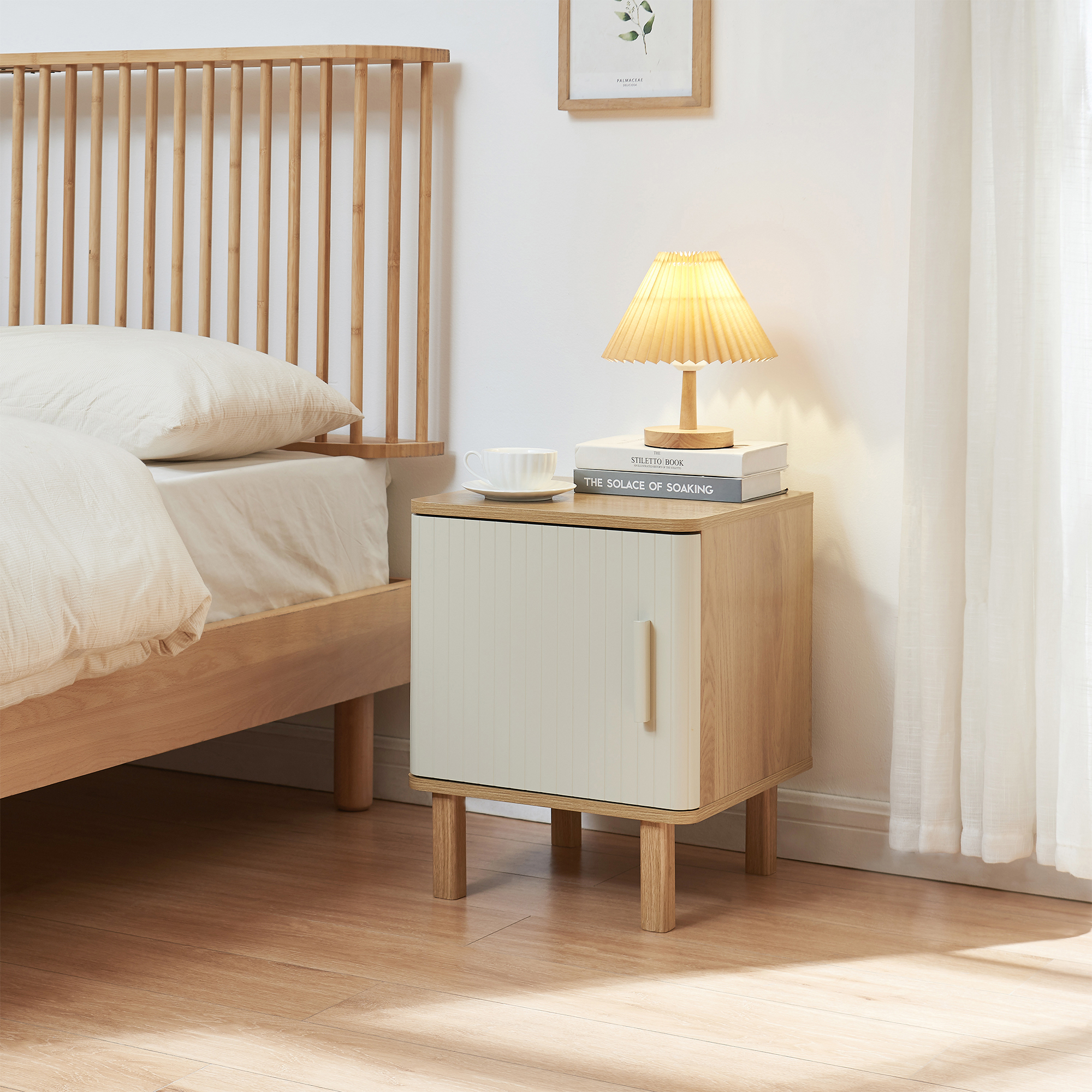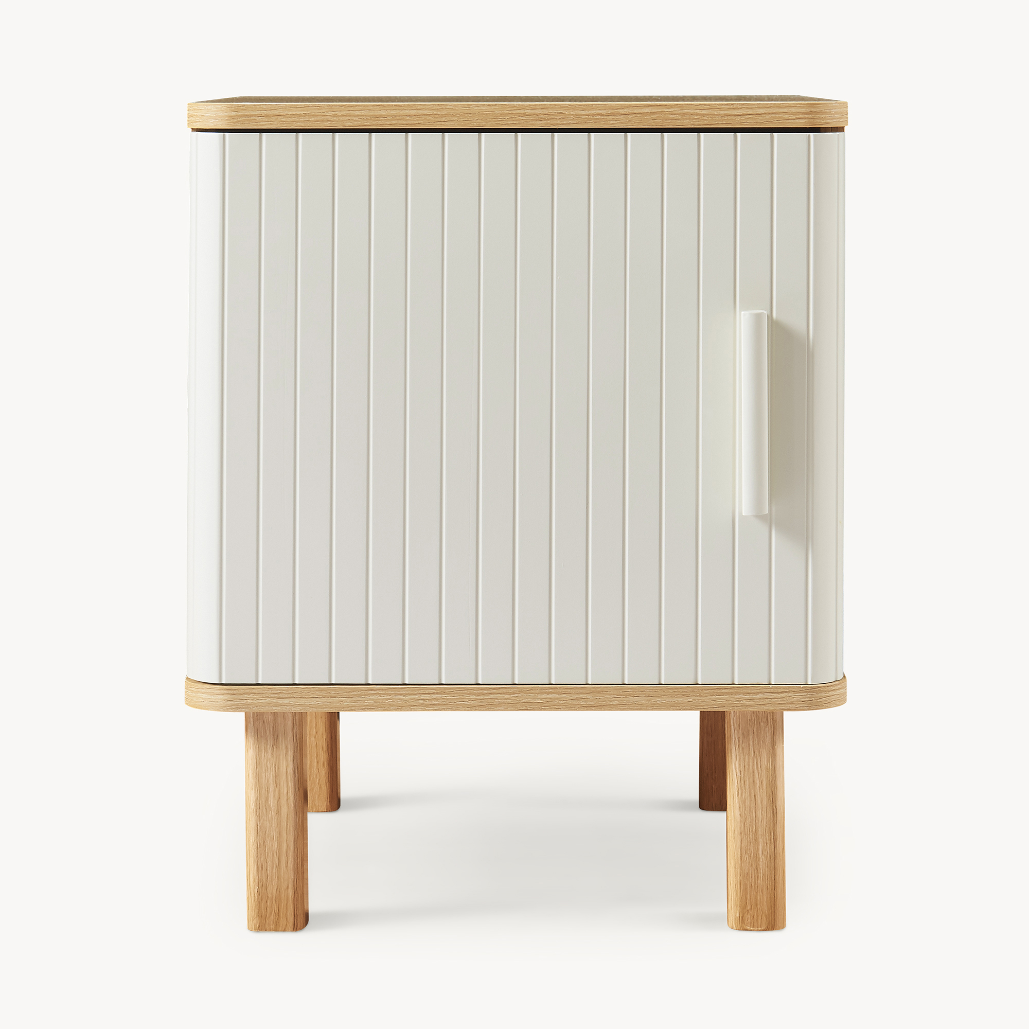 Poate fi folosită atât ca noptieră pentru dormitor, cât și ca mic dulăpior auxiliar în living, birou sau baie. Ușa cu front striat oferă un aspect decorativ plăcut, iar mânerul lateral permite deschiderea rapidă și comodă. În interior, polița suplimentară ajută la depozitarea ordonată a cărților, accesoriilor, obiectelor personale sau produselor de uz zilnic.