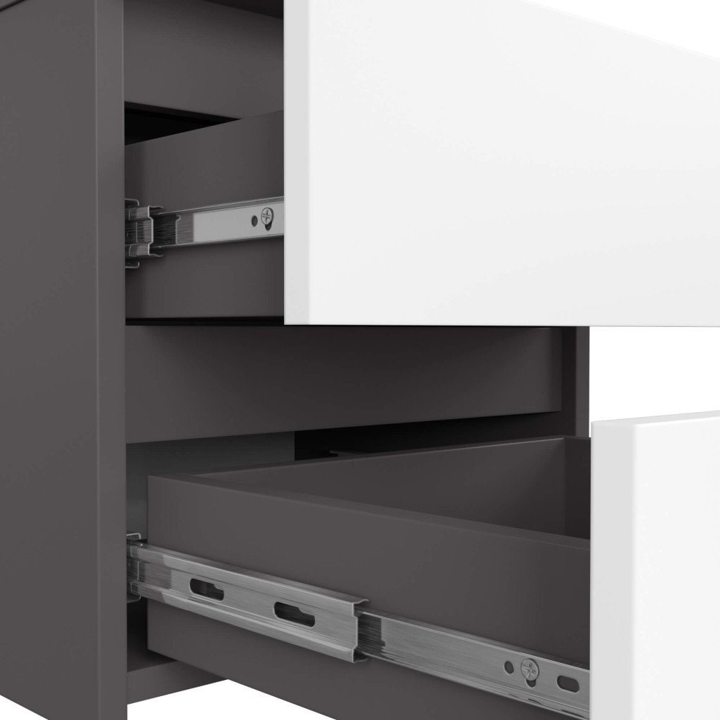 Alege o noptiera dormitor cu 2 sertare practica si eleganta, potrivita pentru amenajări moderne, minimaliste sau clasice. Realizata din PAL laminat rezistent, aceasta piesa de mobilier ofera un echilibru excelent intre aspect placut, durabilitate si functionalitate. Combinatia de gri grafit si alb mat aduce un plus de stil in dormitor, iar formatul compact de 40x35x40 cm o face usor de integrat langa pat sau in camera de tineret.