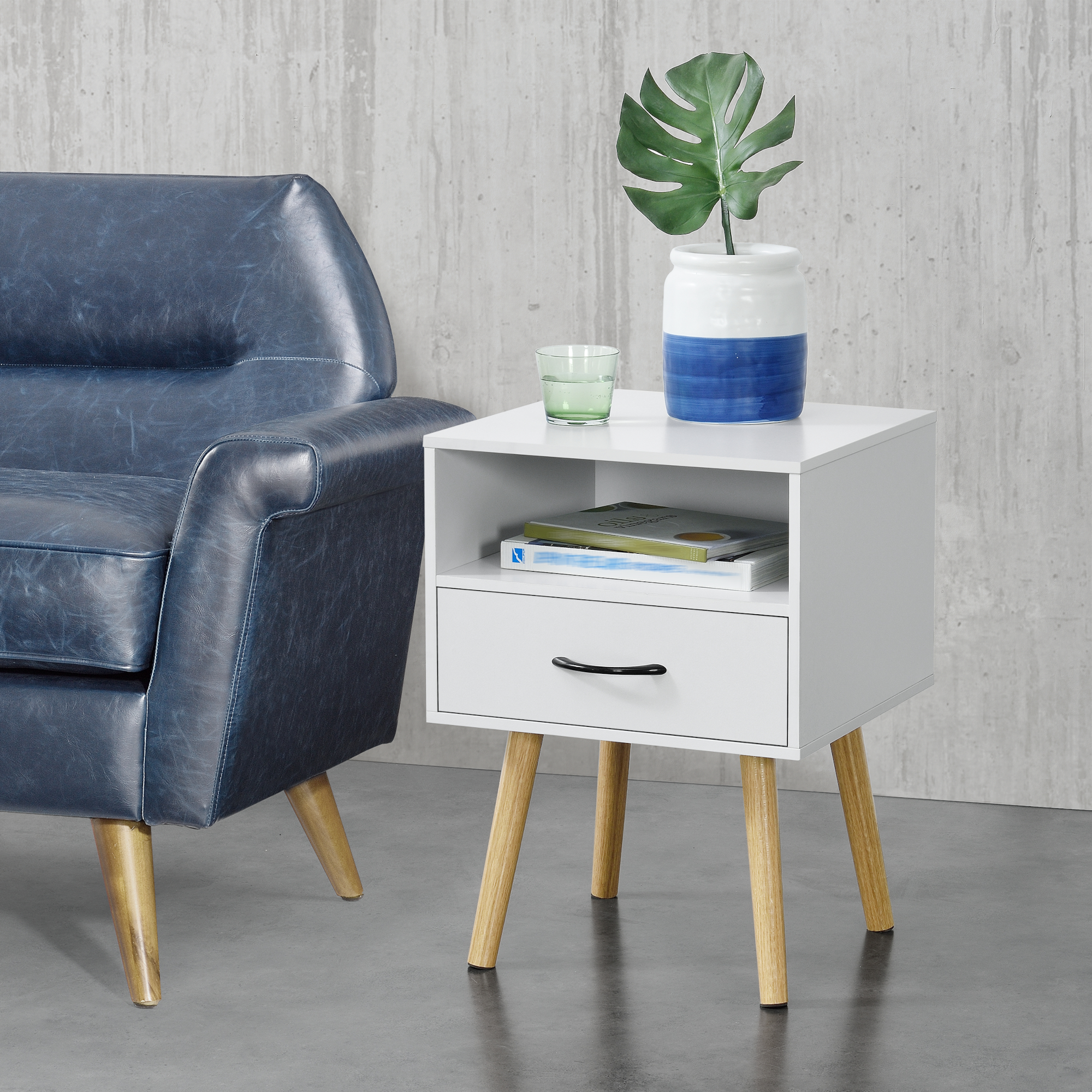 Noptiera Gavle W cu sertar alb [en.casa] HausGarden Leisure