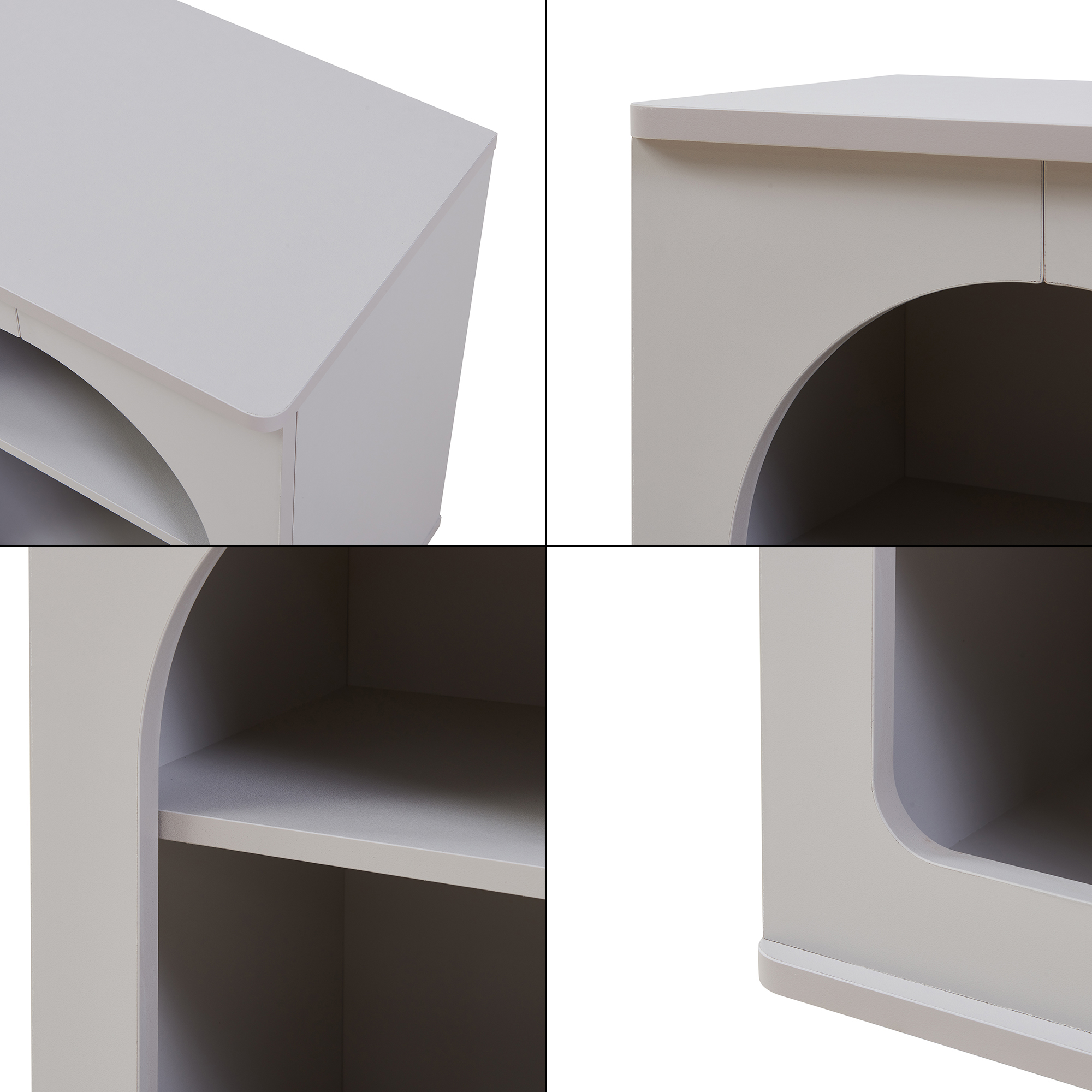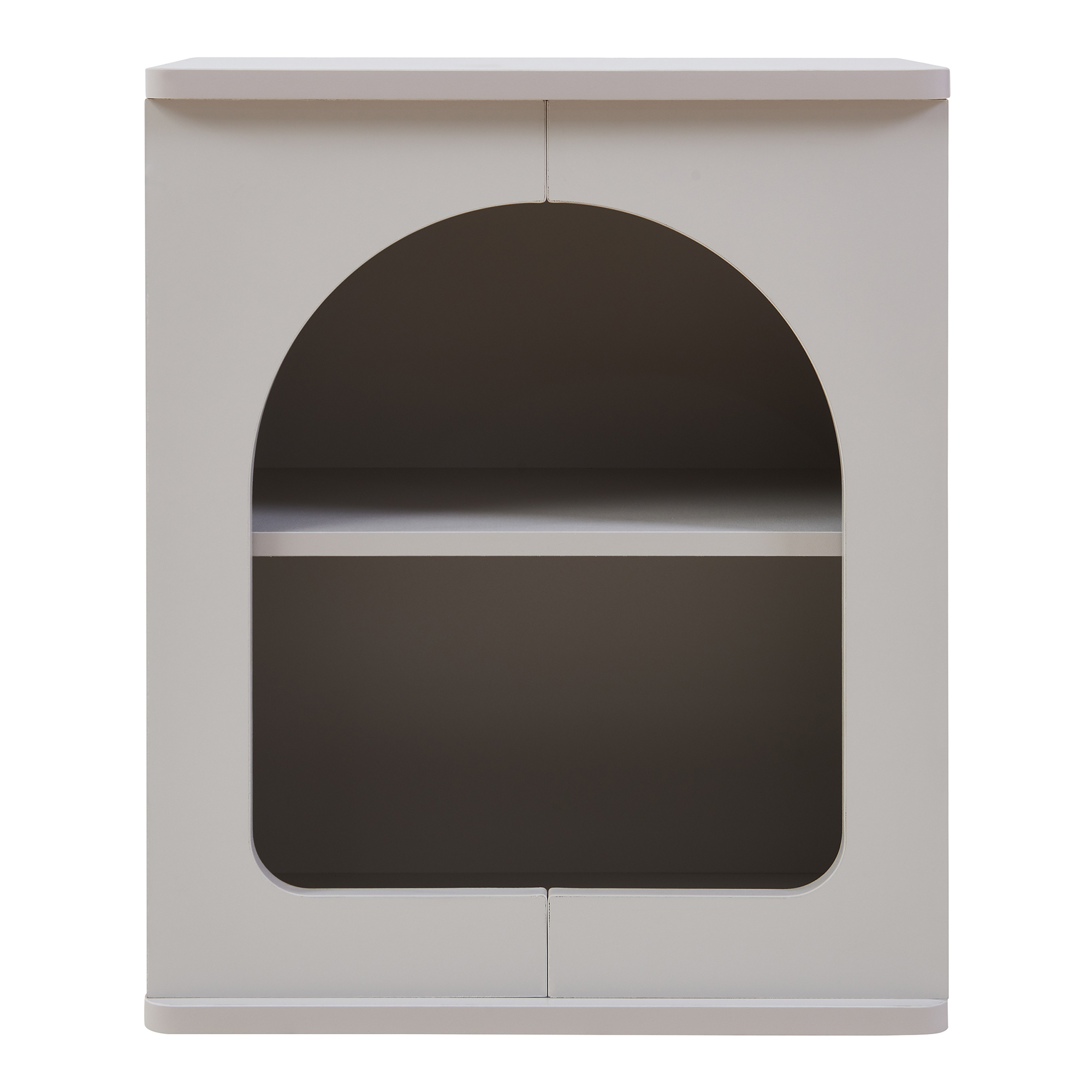 Noptiera Trorhun este alegerea ideală pentru un dormitor bine organizat și elegant. Cu un design modern, linii curate și front decorativ cu formă arcuită, această noptieră gri adaugă un plus de stil și funcționalitate lângă pat.