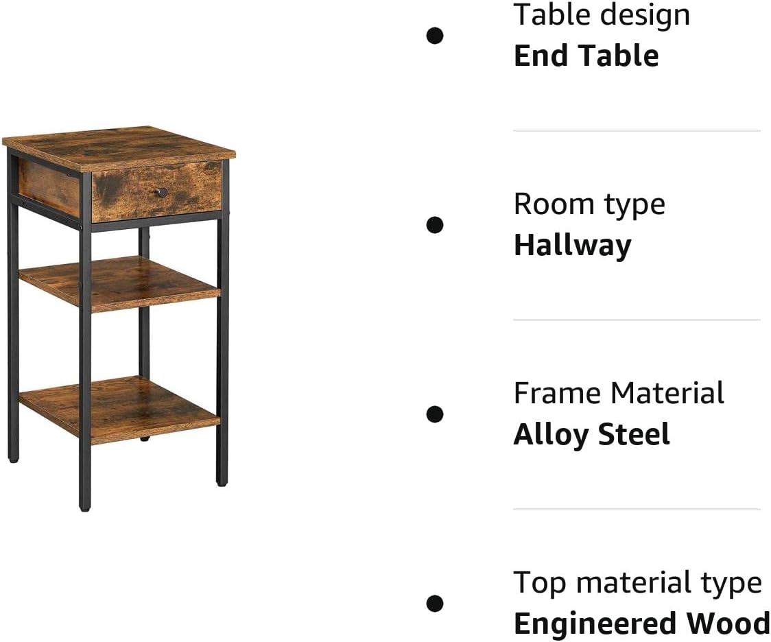 Noptiera inalta VASAGLE cu sertar si 2 rafturi, stil industrial, maro rustic