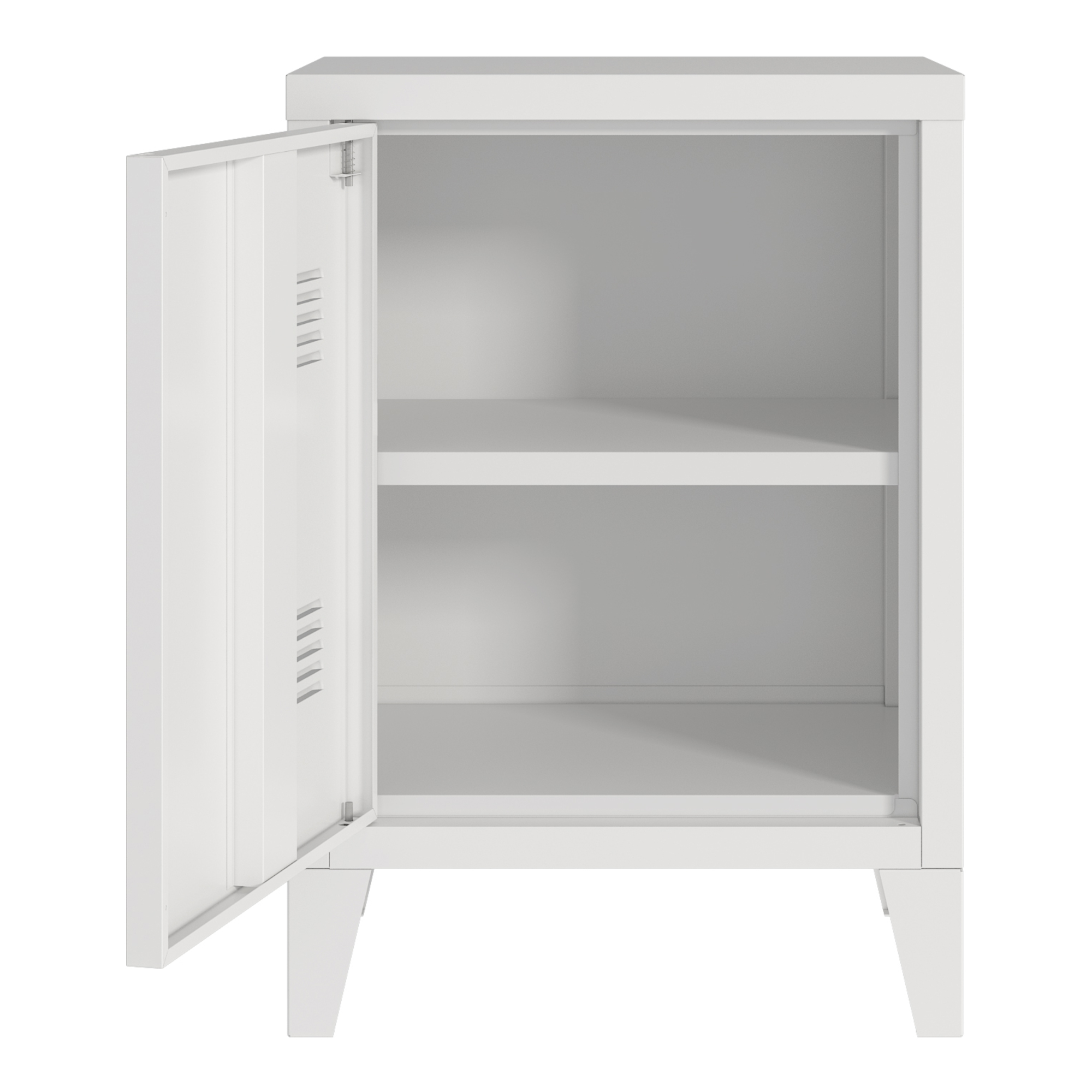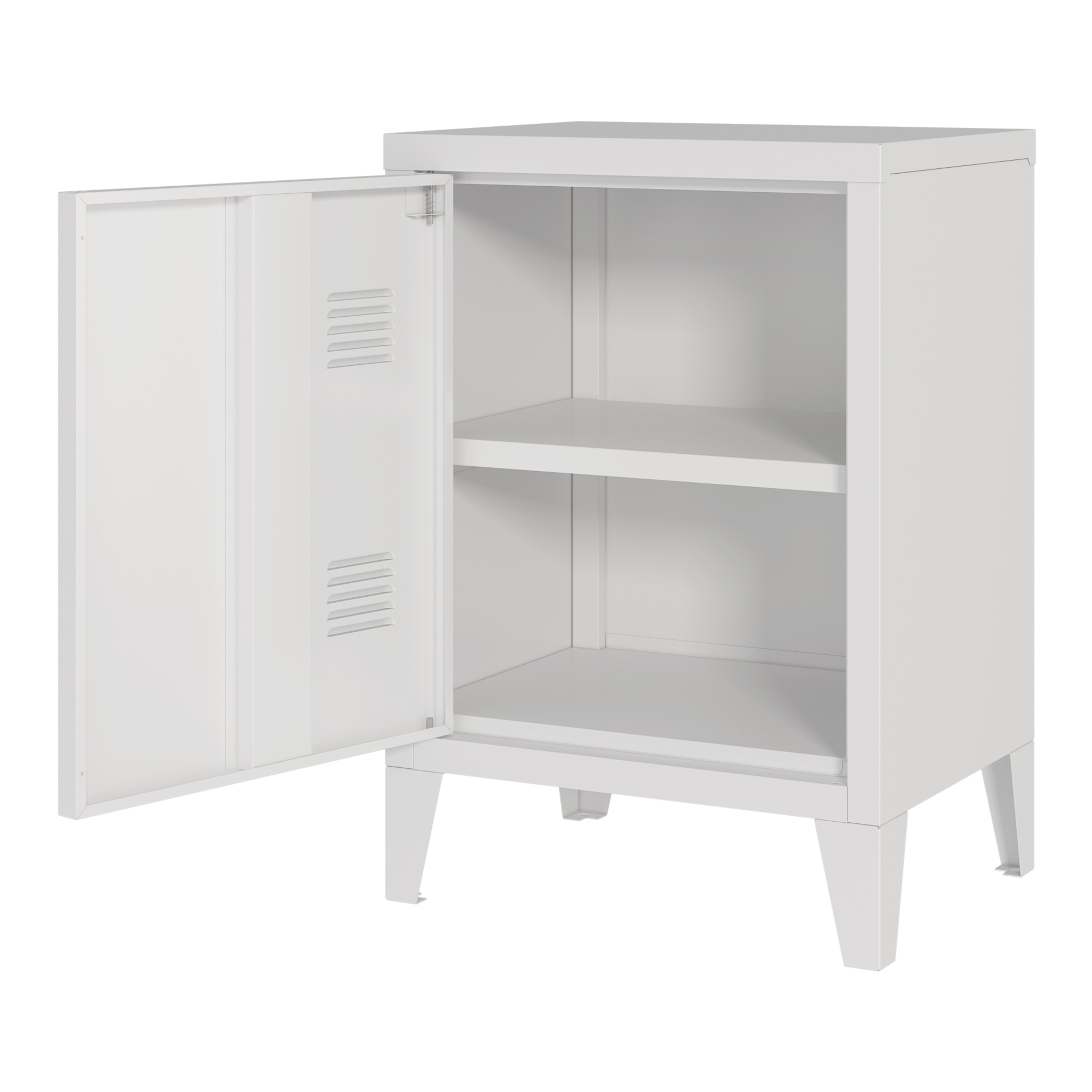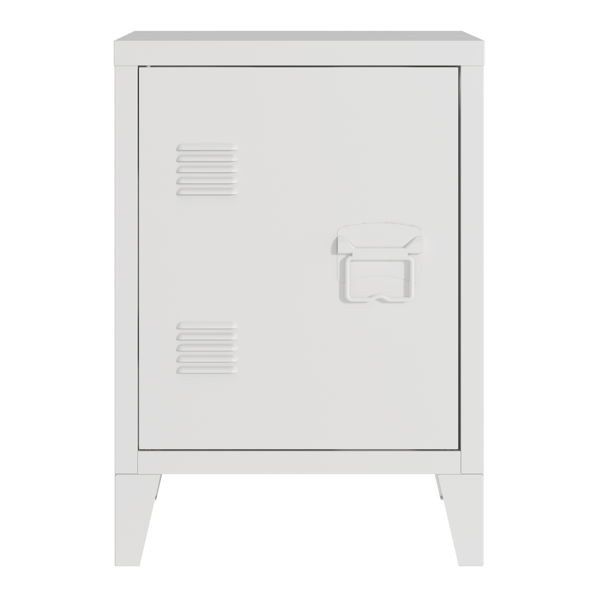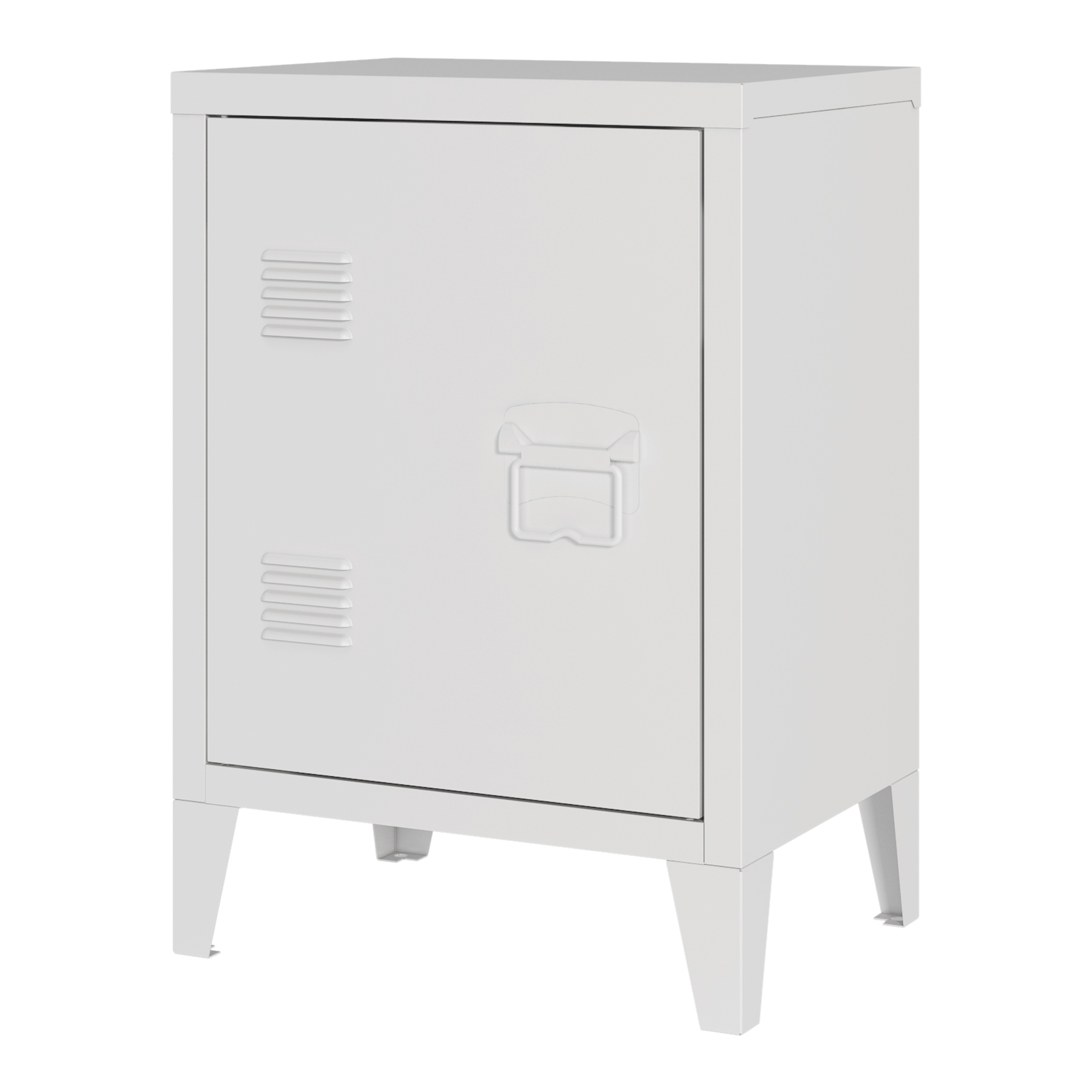 Noptieră metalică albă Inari cu ușă și raft interior, 57 x 40 x 30 cm