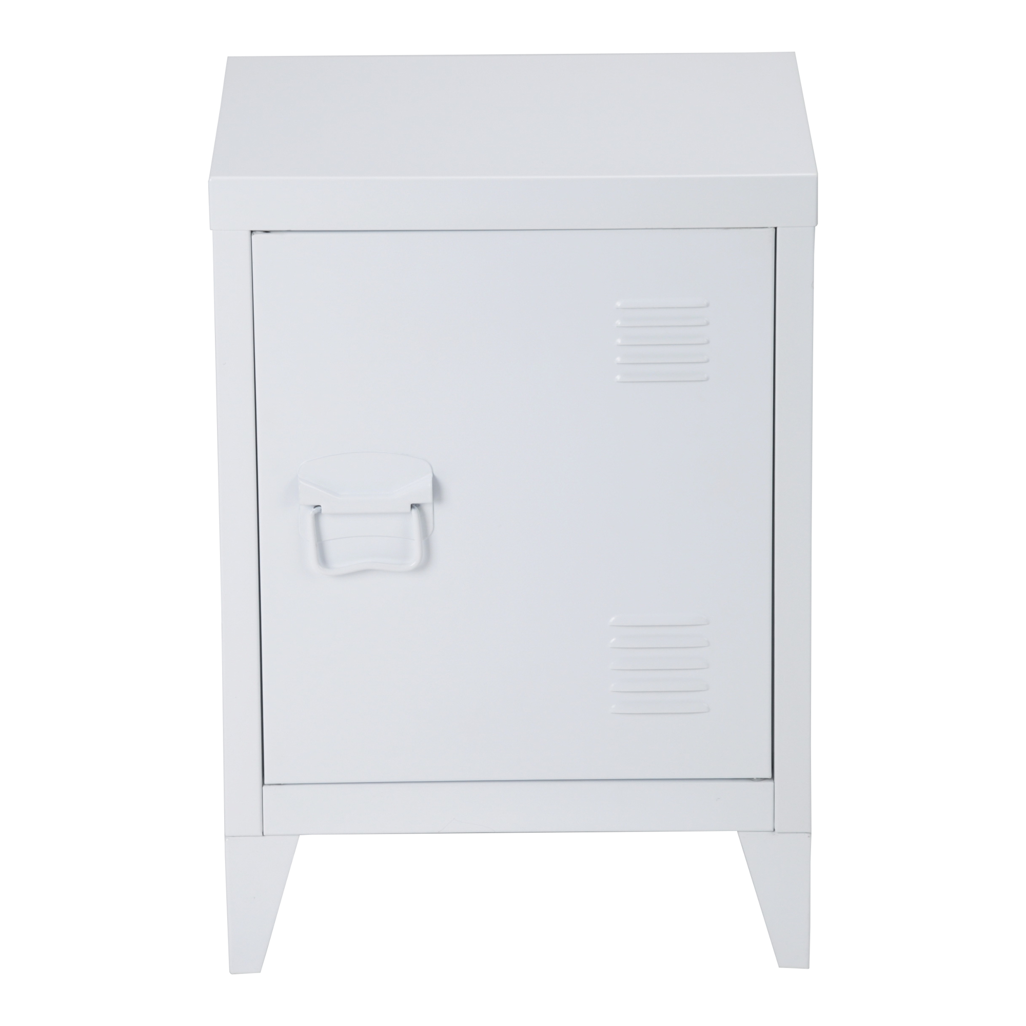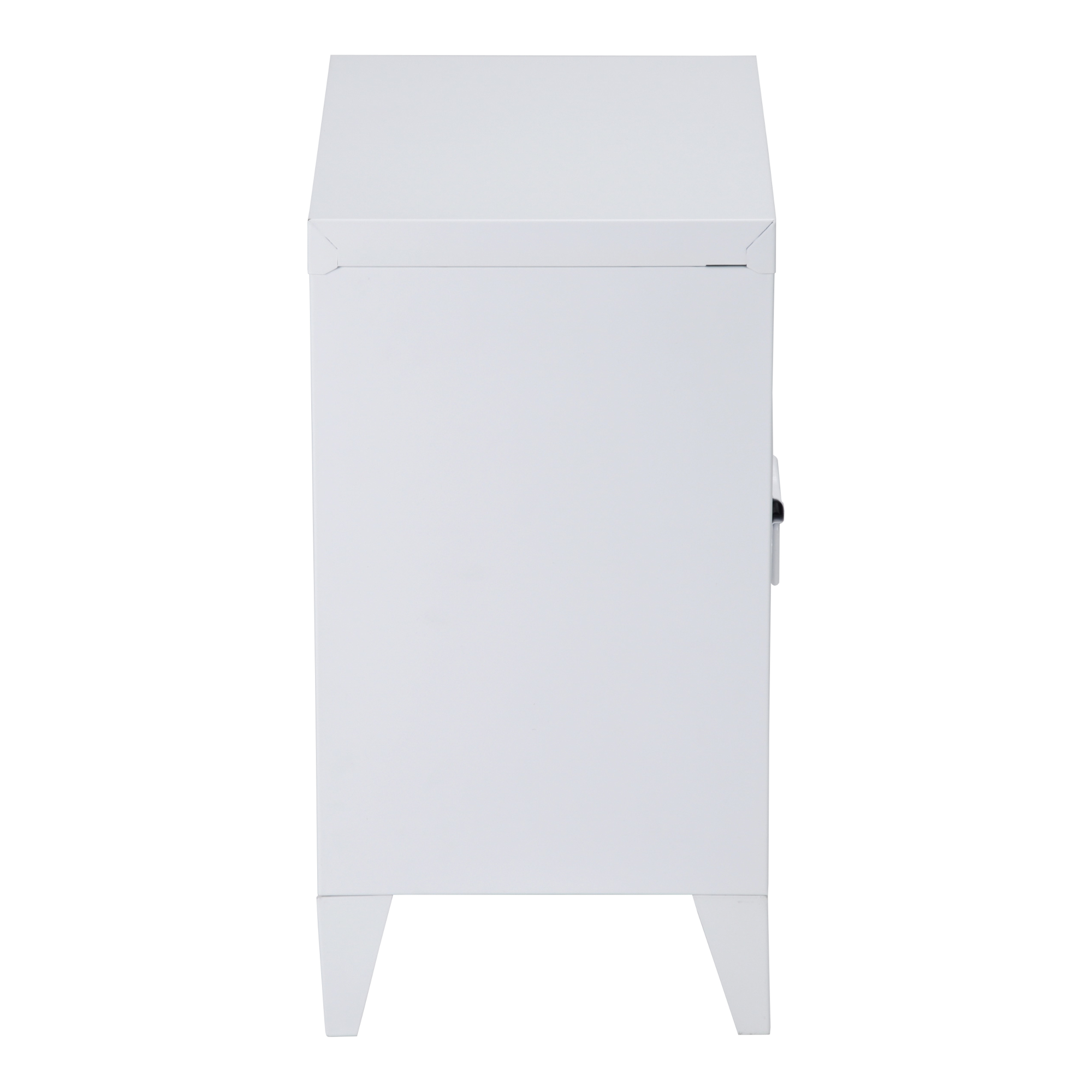 Noptieră metalică albă Inari cu ușă și raft interior, mâner stânga