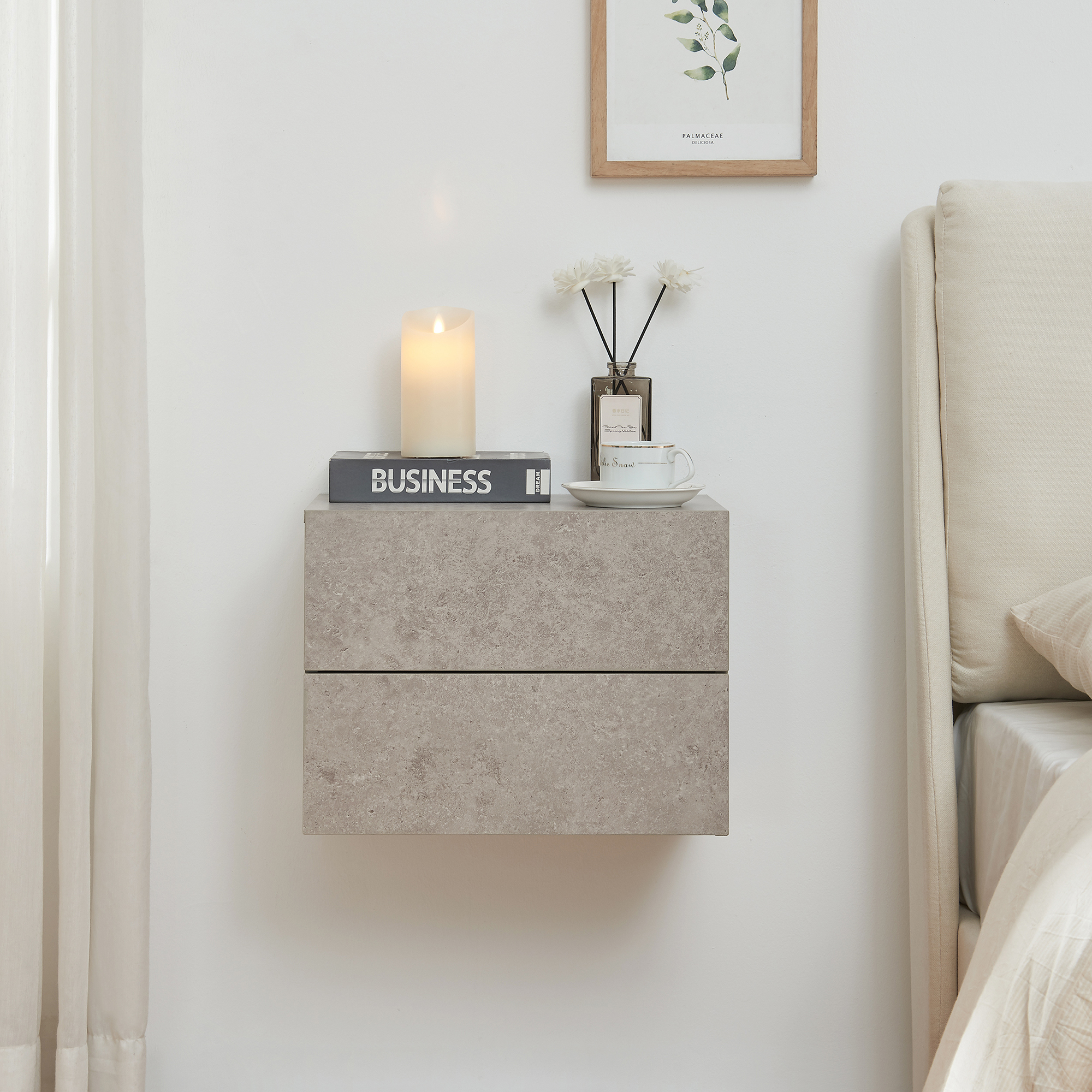 Noptiera suspendată Ampfing este alegerea ideală dacă îți dorești un mobilier practic, compact și elegant pentru dormitor. Cu un design modern și finisaj în aspect beton deschis, această noptieră suspendată se integrează ușor în amenajări contemporane, minimaliste sau industriale.
