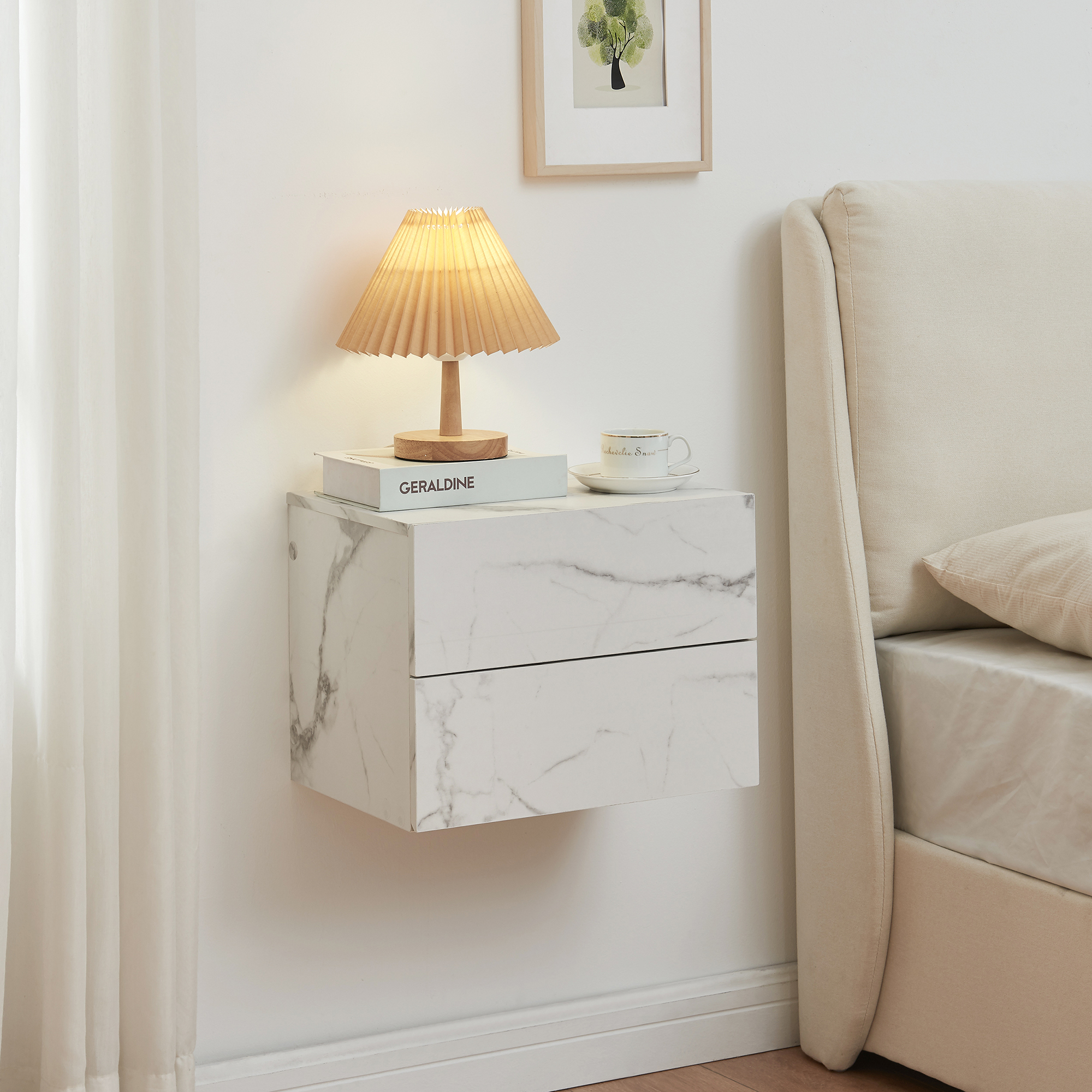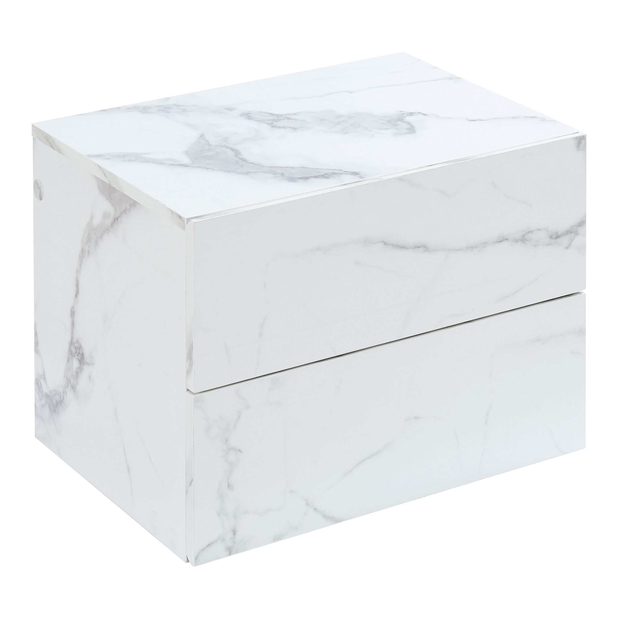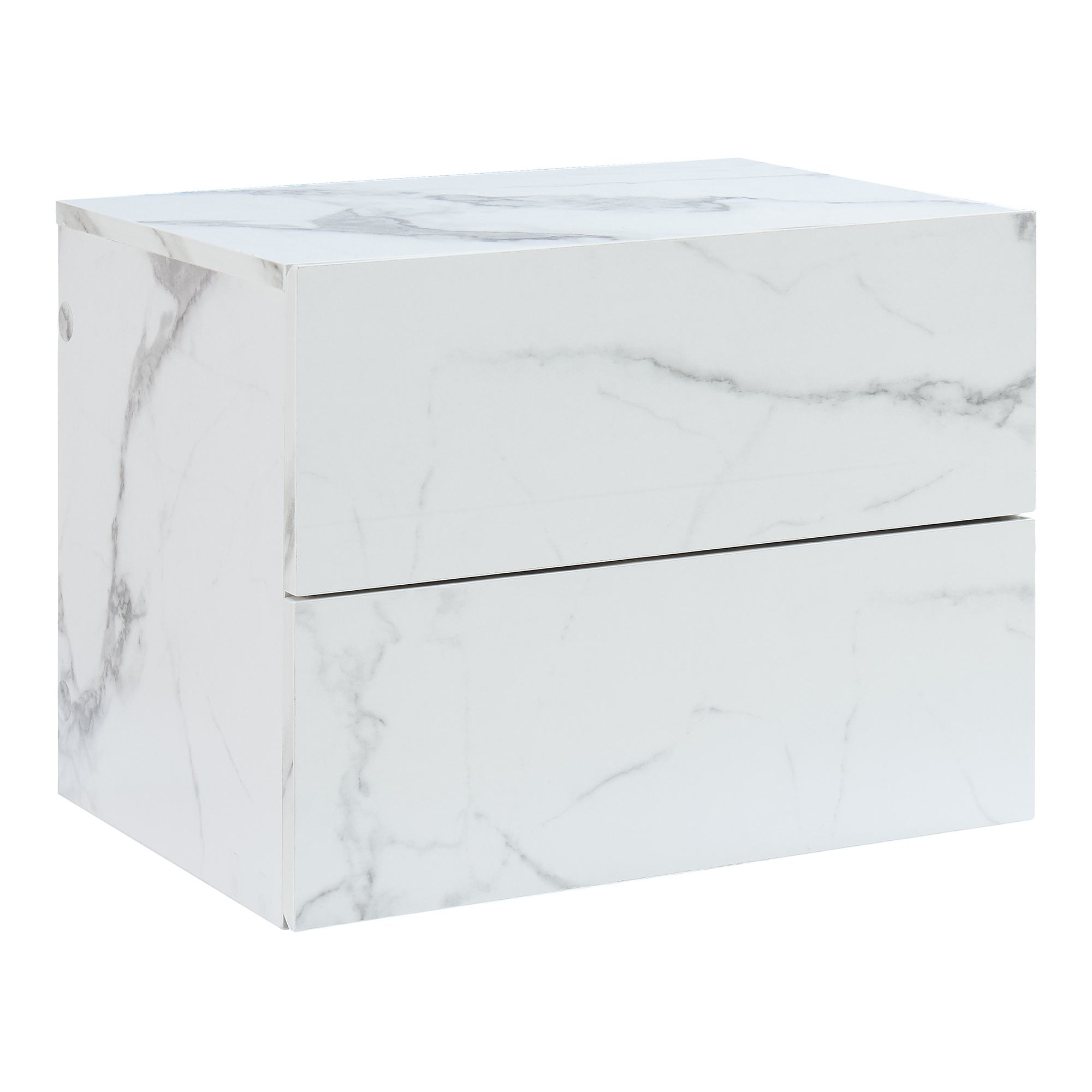 Noptieră suspendată Ampfing cu 2 sertare, aspect marmură albă